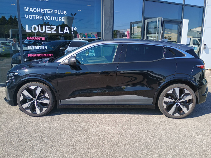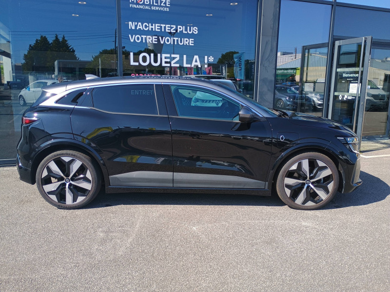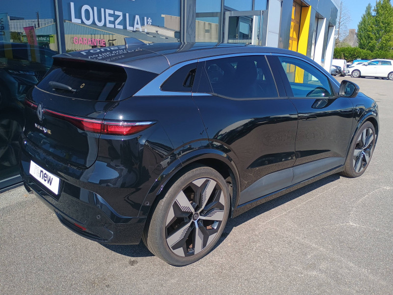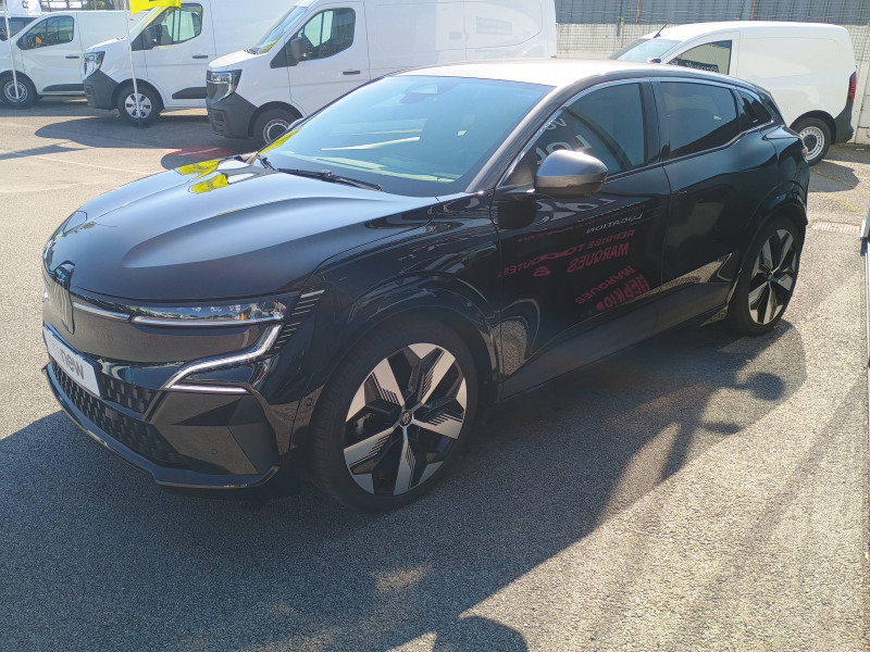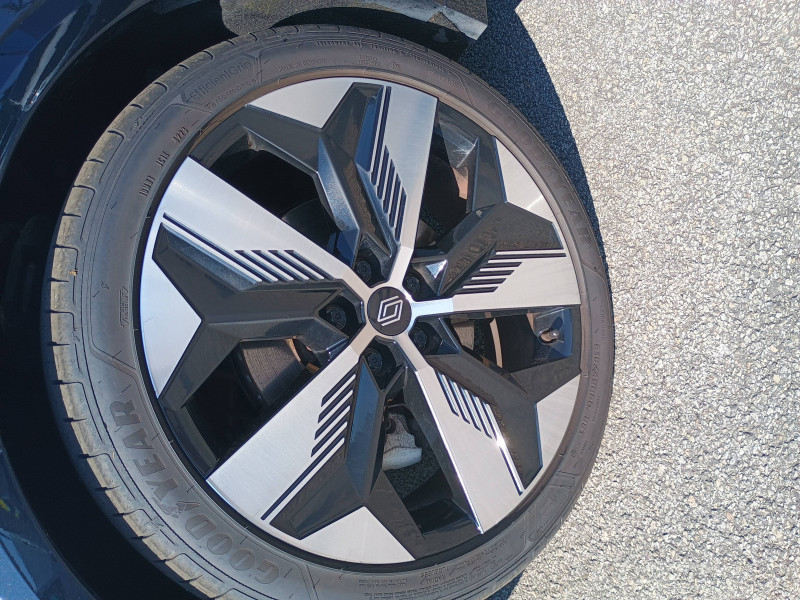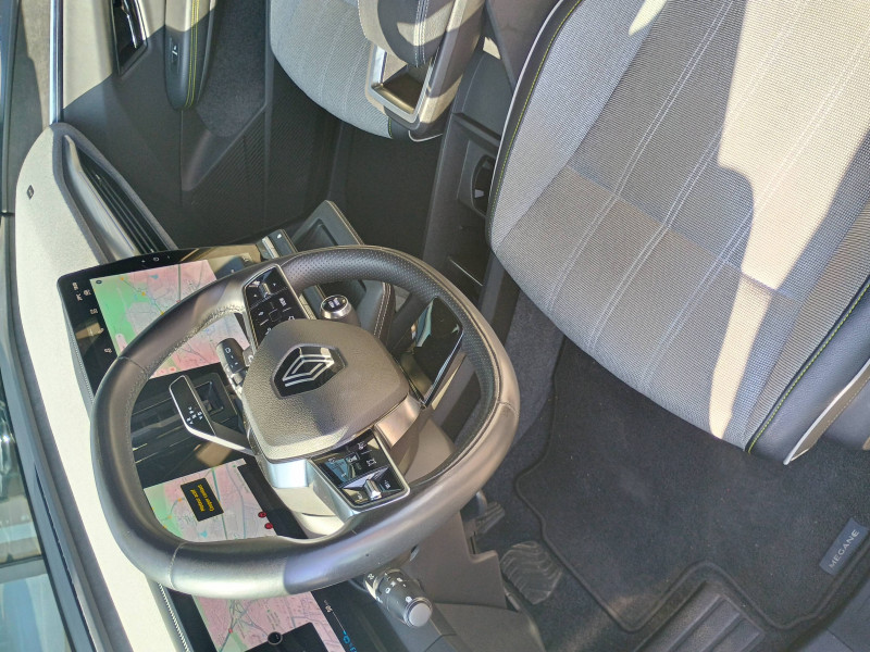 Bandeau full LED AR avec effet 3D "moiré": / Commutation automatique des feux de route/croisement: / Commutation automatique des feux et détecteur de pluie: / Jantes alliage diamantées 20" Soren: / Projecteurs full LED directionnels avec fonction antibrouillard: / Rétroviseur jour/nuit automatique: / Système Multimédia openR link 12" : navigation, services Google, audio Arkamys Auditorium 6 HP: / 4 Ports USB (2 AV et 2 AR): / Airbags latéraux, milieu AV et rideaux: / Alerte d'oubli de ceinture de sécurité: / Alerte de distance de sécurité: / Alerte et assistant maintien de voie: / Ambiance interieure E3: / Antenne Requin: / Bouclier AV sport avec lame F1: / Bouclier AV Sport avec lame F1 ton caisse: / Carte Renault accès et démarrage mains libres: / Changement de mode de conduite via palettes au volant: / Chargeur courant continu 130kW et courant alternatif 22kW (optimal): / Console de rangement haute avec accoudoir: / Câble pour borne de recharge (mode 3 type 2 triphasé, 5m): / Détection de fatigue: / Freinage actif d'urgence urbain (piéton + cycliste + intersection): / Kit de gonflage: / Multi-sense: / Notice d'utilisation digitale embarqué dans le système multimédia du véhicule: / Poignées de portes affleurantes: / Purificateur d'air: / Réplication smartphone: / Signature lumineuse AV: / Siège AV réglables 6 positions conducteur + lombaire: / Sièges avec système ISOFIX: / Tableau de bord full numérique: / Volant chauffant: / Peinture mono-ton: / Sellerie mixte textile enduit grainé / textile recyclé ELZA REC gris chiné: / / Véhicules équivalents: C4 - 308 - Golf