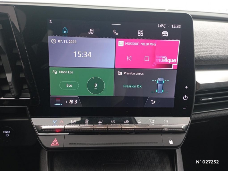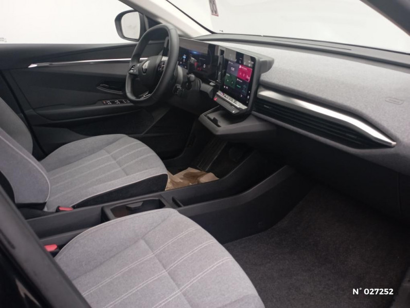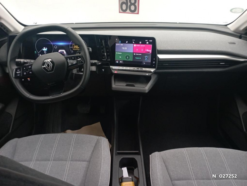 Console de rangement haute avec accoudoir / Peinture opaque / Réplication smartphone / Changement de mode de conduite via palettes au volant / Commutation automatique des feux et détecteur de pluie / Commutation automatique des feux et essuie-glaces manuels / Bouclier AV Sport avec lame F1 ton caisse / Rétroviseur manuel / Tableau de bord full numérique / 4 Ports USB (2 AV et 2 AR) / Carte Renault accès et démarrage mains libres / Peinture mono-ton / Alerte et prévention sortie de voie (dont urgence) / Purificateur d'air / Volant non chauffant / Ambiance interieure Noir / Bouclier AV sport avec lame F1 / Poignées de portes affleurantes / Signature lumineuse AV / Système Multimédia openR link 9" avec audio Arkamys Classic 4 HP / Airbags latéraux, milieu AV et rideaux / Alerte de distance de sécurité / Alerte et assistant maintien de voie / Alerte d'oubli de ceinture de sécurité / Détection de fatigue / Freinage actif d'urgence urbain (piéton + cycliste + intersection) / Kit de gonflage / Sièges avec système ISOFIX / Chargeur courant continu 130kW et courant alternatif 7kW (super) / Notice d'utilisation digitale embarqué dans le système multimédia du véhicule / Câble pour borne de recharge (mode 3 type 2 monophasé, 5m) / Classe energetique 0 / Sans chargeur à induction