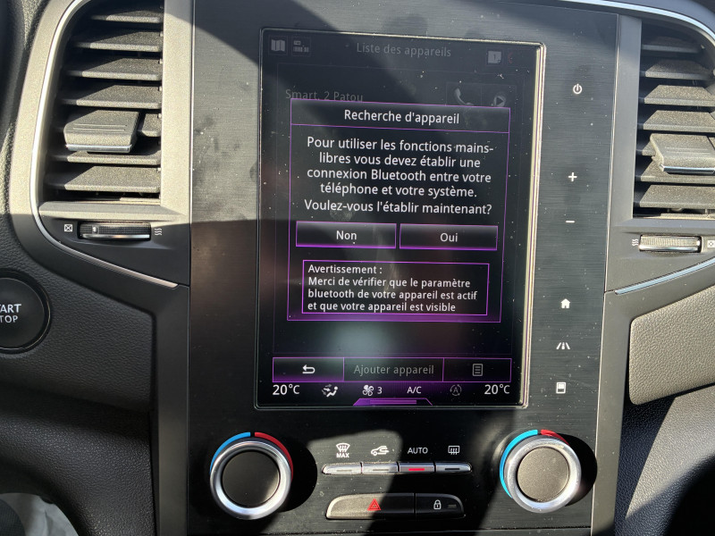 Caméra de recul et aides au parking AV/AR / Feux de jour à guide de lumière LED et effet 3D / Alerte d'oubli de ceinture de sécurité / Alerte de distance de sécurité / Android Auto & Apple CarPlay / Cartographie Europe / Compteurs TFT 7" avec matrice couleur / Console centrale de rangement avec accoudoir / Déconnexion airbag passager AV / Harmonie Carbone foncé / Kit de gonflage et de réparation / Pare-soleil avec miroir de courtoisie éclairé / Radio multimédia avec écran capacitif 8,7" vertical / Renault Multi-Sense (choix de modes de conduite) / Rétroviseur intérieur électrochrome / Sièges AV réglables en hauteur et siège conducteur avec réglage lombaire