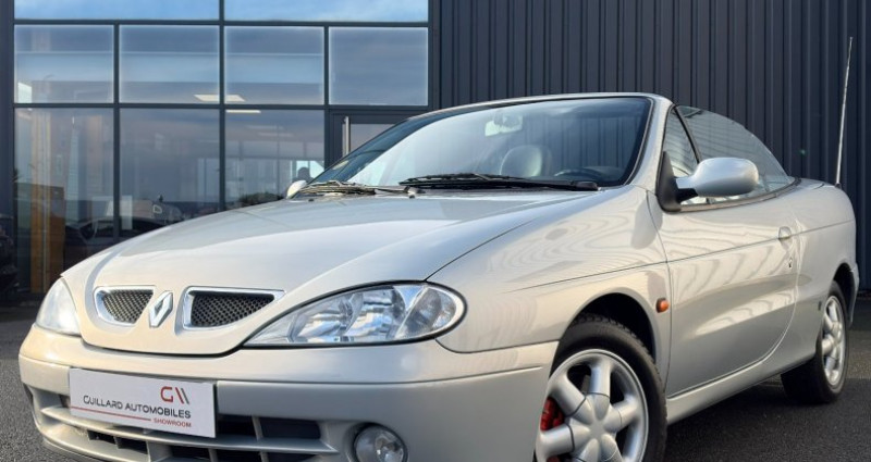 //// GUILLARD AUTOMOBILES VOUS PROPOSE A LA VENTE CETTE BELLE RENAULT MEGANE CABRIOLET 2.0 16S 140ch BVM5 //// // FUTUR COLLECTOR // -Mise en circulation : 06/2002 -Puissance fiscale : 8ch *Description du véhicule : -Sièges en cuir / tissu noir et gris avec surpiqûres argentées -Accoudoirs de portières en cuir noir avec surpiqûres argentées -Volant cuir -Radio CD commande au volant -Ordinateur de bord -Climatisation -Vitres électriques -Rétroviseurs électriques -Capote électrique -Boîte de vitesse manuelle à 5 rapports -Antibrouillards -Jantes alu 15 -Etriers de freins rouges Véhicule en très bon état. Entretien suivi à jour (nombreuses factures à l'appui). Capote neuve. Véhicule révisé et garanti 3 mois moteur / boite / pont. Pas de reprise possible. // TOUS NOS VEHICULES SONT VISIBLES SUR RENDEZ-VOUS A PLEUMELEUC // SARL GUILLARD AUTOMOBILES 6 RUE LAENNEC 35137 PLEUMELEUC // HORAIRES D'OUVERTURE SEULEMENT SUR RENDEZ-VOUS //: -DU LUNDI au VENDREDI : 9h00-12h00 14h00-18h00 -LE SAMEDI : 9h00-12h00