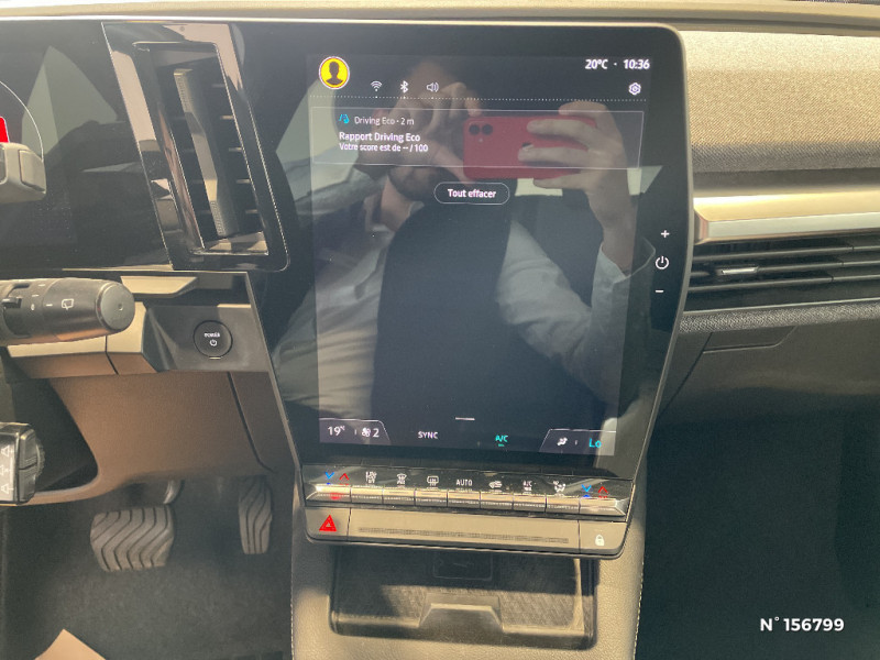 Réplication smartphone / Câble pour borne de recharge (mode 3 type 2 monophasé, 5m) / Commutation automatique des feux de route/croisement / Changement de mode de conduite via palettes au volant / Commutation automatique des feux et détecteur de pluie / Peinture mono-ton / Bouclier AV Sport avec lame F1 ton caisse / Rétroviseur manuel / Tableau de bord full numérique / 4 Ports USB (2 AV et 2 AR) / Carte Renault accès et démarrage mains libres / Console de rangement haute avec accoudoir / Purificateur d'air / Volant non chauffant / Ambiance interieure Noir / Bouclier AV sport avec lame F1 / Eclairage d'accueil portes AV / Poignées de portes affleurantes / Projecteurs full LED directionnels avec fonction antibrouillard / Sellerie textile recyclé EVA REC gris chiné / Tapis couleur standard / Système Multimédia openR link 12" : navigation, services Google, audio Arkamys Auditorium 6 HP / Airbags latéraux, milieu AV et rideaux / Alerte de distance de sécurité / Alerte et assistant maintien de voie / Alerte d'oubli de ceinture de sécurité / Détection de fatigue / Freinage actif d'urgence urbain (piéton + cycliste + intersection) / Kit de gonflage / Sièges avec système ISOFIX / Câble de recharge pour Wallbox (mode 3 type 2, 5m) / Chargeur courant continu 130kW et courant alternatif 7kW (super) / Sièges avant réglables 6 positions conducteur + lombaire, 4 positions passager / Enjoliveurs bi-ton 18" terdam / Optimisation autonomie avec carrosserie spécifique / Classe energetique A / Notice d'utilisation digitale embarqué dans le système multimédia du véhicule