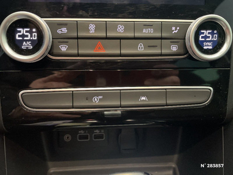 Commutation automatique des feux de route/croisement / Déconnexion airbag passager AV / Tableau de bord avec écran numérique et personnalisable 7" / Appel d'Urgence Renault / Alerte détection de fatigue / Kit de gonflage et de réparation / Rétroviseur intérieur électrochrome / Renault Multi-Sense (choix de modes de conduite) / Alerte Distance Sécurité / Harmonie Carbone foncé / Console centrale de rangement avec accoudoir / Pare-soleil avec miroir de courtoisie éclairé / Sièges AV réglables en hauteur et siège conducteur avec réglage lombaire / Feux de jour à guide de lumière LED et effet 3D / Mise à jour de l'alerte oubli de ceinture de sécurité / Carte Renault avec accès et démarrage mains libres avec fermeture à l'éloignement / Sellerie mixte similicuir/tissu noir / Freinage actif d'urgence avec détection piétons / Tableau de bord avec écran numérique et personnalisable 10" / Système multimédia EASY LINK 9,3" avec navigation / Compatibilité Apple CarPlay Wifi / Navigation répliquée dans le tableau de bord / Classe energetique 1 / Antenne requin / Séquence d'accueil à l'approche avec éclairage de signature lumineuse / Volant Soft-Touch