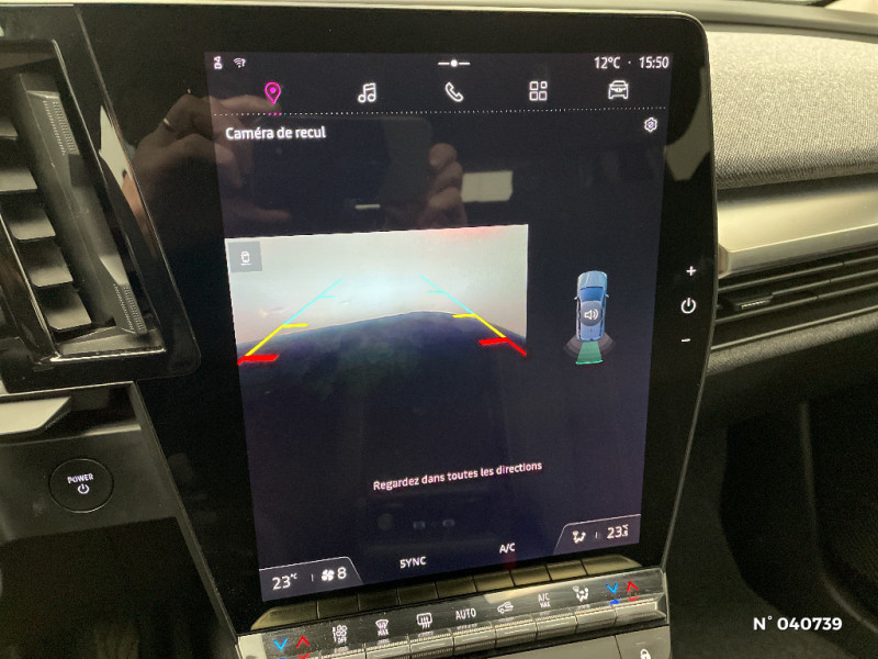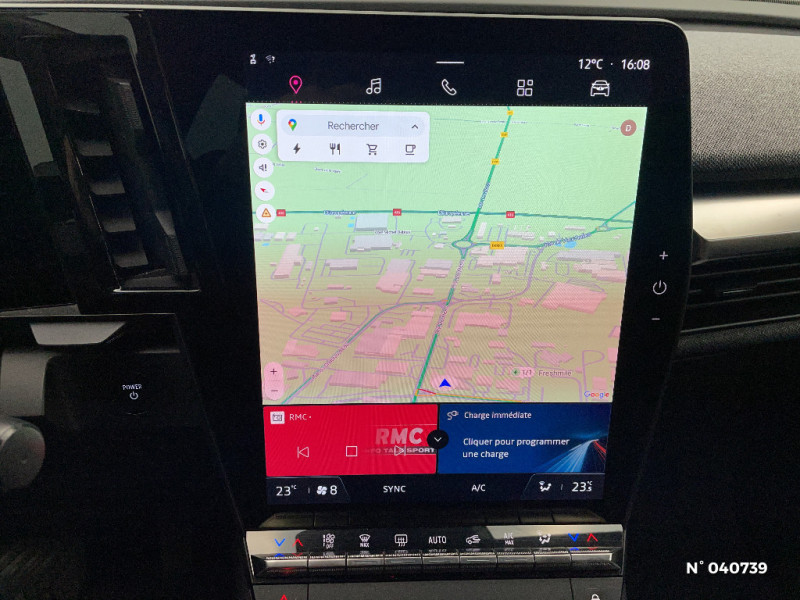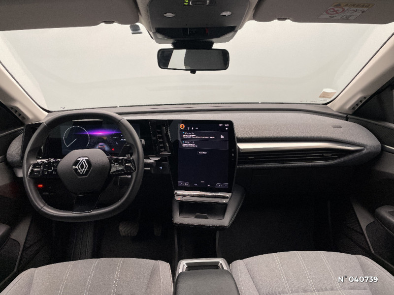 Ambiance interieure Noir / Bouclier AV sport avec lame F1 / Eclairage d'accueil portes AV / Poignées de portes affleurantes / Projecteurs full LED directionnels avec fonction antibrouillard / Sellerie textile recyclé EVA REC gris chiné / Freinage actif d'urgence urbain (piéton + cycliste + intersection) / Kit de gonflage / Sièges avec système ISOFIX / Câble de recharge pour Wallbox (mode 3 type 2, 5m) / Chargeur courant continu 130kW et courant alternatif 22kW (optimal) / Sièges avant réglables 6 positions conducteur + lombaire, 4 positions passager / Enjoliveurs bi-ton 18" terdam / Optimisation autonomie avec carrosserie spécifique / Classe energetique A / Notice d'utilisation digitale embarqué dans le système multimédia du véhicule / Changement de mode de conduite via palettes au volant / Commutation automatique des feux et détecteur de pluie / Peinture mono-ton / Bouclier AV Sport avec lame F1 ton caisse / Rétroviseur manuel / Tableau de bord full numérique / 4 Ports USB (2 AV et 2 AR) / Carte Renault accès et démarrage mains libres / Tapis couleur standard / Système Multimédia openR link 12" : navigation, services Google, audio Arkamys Auditorium 6 HP / Airbags latéraux, milieu AV et rideaux / Alerte de distance de sécurité / Alerte et assistant maintien de voie / Alerte d'oubli de ceinture de sécurité / Détection de fatigue / Console de rangement haute avec accoudoir / Purificateur d'air / Volant non chauffant / Câble pour borne de recharge (mode 3 type 2 triphasé, 5m) / Réplication smartphone / Commutation automatique des feux de route/croisement