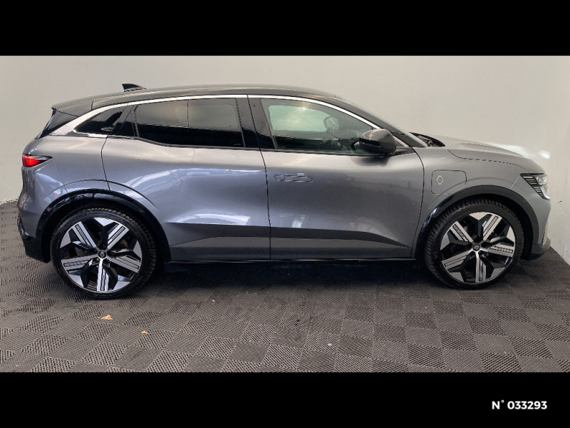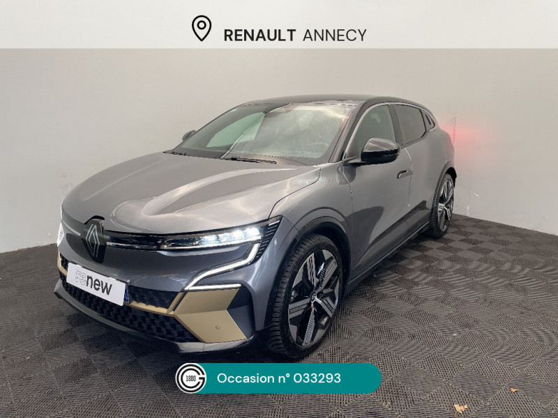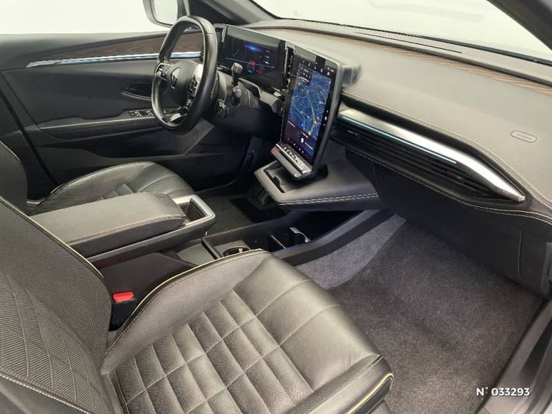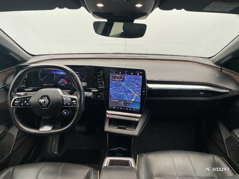 Chargeur courant continu 130kW et courant alternatif 7kW (super) / Classe energetique A / Sellerie Cuir Riviera Noir Titane / Notice d'utilisation digitale embarqué dans le système multimédia du véhicule / Jantes alliage diamantées 20" Enos / Câble pour borne de recharge (mode 3 type 2 monophasé, 5m) / Lame F1 Gold / Réplication smartphone / Signature lumineuse AV / Tapis couleur standard / Système Multimédia openR link 12" : navigation, services Google, audio premium Harman Kardon 9HP / Airbags latéraux, milieu AV et rideaux / Alerte de distance de sécurité / Alerte et assistant maintien de voie / Alerte d'oubli de ceinture de sécurité / Bandeau full LED AR avec effet 3D "moiré" / Détection de fatigue / Commutation automatique des feux de route/croisement / Jantes alliage 20'' Noir brillant / Rétroviseur jour/nuit automatique / Radars AV, AR et latéraux / Changement de mode de conduite via palettes au volant / Commutation automatique des feux et détecteur de pluie / Multi-sense / Tableau de bord full numérique / 4 Ports USB (2 AV et 2 AR) / Carte Renault accès et démarrage mains libres / Console de rangement haute avec accoudoir / Purificateur d'air / Siège AV réglables électriquement et massant, 6 positions + lombaire / Volant chauffant / Ambiance interieure E4 / Antenne Requin / Bouclier AV sport avec lame F1 / Eclairage d'accueil portes AV / Lame F1 Golf / Poignées de portes affleurantes / Projecteurs full LED directionnels avec fonction antibrouillard / Freinage actif d'urgence urbain (piéton + cycliste + intersection) / Kit de gonflage / Sièges avec système ISOFIX / Câble de recharge pour Wallbox (mode 3 type 2, 5m)