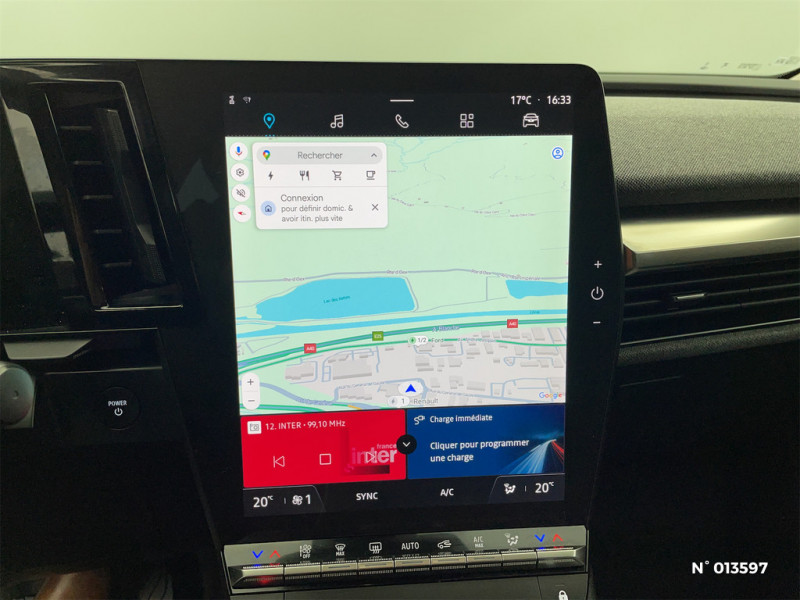 Chargeur courant continu 130kW et courant alternatif 7kW (super) / Enjoliveurs bi-ton 18" terdam / Optimisation autonomie avec carrosserie spécifique / Classe energetique A / Notice d'utilisation digitale embarqué dans le système multimédia du véhicule / Câble pour borne de recharge (mode 3 type 2 monophasé, 5m) / Réplication smartphone / Commutation automatique des feux de route/croisement / Changement de mode de conduite via palettes au volant / Commutation automatique des feux et détecteur de pluie / Peinture mono-ton / Bouclier AV Sport avec lame F1 ton caisse / Airbags latéraux, milieu AV et rideaux / Alerte de distance de sécurité / Alerte et assistant maintien de voie / Alerte d'oubli de ceinture de sécurité / Détection de fatigue / Purificateur d'air / Volant non chauffant / Ambiance interieure Noir / Bouclier AV sport avec lame F1 / Eclairage d'accueil portes AV / Poignées de portes affleurantes / Projecteurs full LED directionnels avec fonction antibrouillard / Sellerie textile recyclé EVA REC gris chiné / Tapis couleur standard / Système Multimédia openR link 12" : navigation, services Google, audio Arkamys Auditorium 6 HP / Rétroviseur manuel / Tableau de bord full numérique / 4 Ports USB (2 AV et 2 AR) / Carte Renault accès et démarrage mains libres / Console de rangement haute avec accoudoir / Freinage actif d'urgence urbain (piéton + cycliste + intersection) / Kit de gonflage / Sièges avec système ISOFIX / Câble de recharge pour Wallbox (mode 3 type 2, 5m) / Sièges avant réglables 6 positions conducteur + lombaire, 4 positions passager