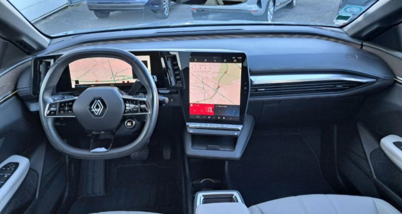EQUIPEMENTS Régulateur limiteur de vitesse, Câble de recharge domestique (mode 2), Projecteurs full LED directionnels avec fonction antibrouillard, Rétroviseurs extérieurs noir brillant, Radars AV AR et latéraux, Multi/sense, Lève/vitres AR électriques à impulsion, Lève/vitres AV électriques à impulsion, Purificateur d'air, Poignées de portes affleurantes, Réplication smartphone, Rétroviseur jour/nuit automatique, Feux anti/brouillard LED, Kit de gonflage, Mode ECO, Notice d'utilisation digitale embarqué dans le système multimédia du véhicule, Bandeau full LED AR avec effet 3D moiré, Freinage actif d'urgence urbain (piéton + cycliste + intersection), Alerte de survitesse avec reconnaissance des panneaux de signalisation, Alerte de distance de sécurité, Sièges avec système ISOFIX, Alerte et assistant maintien de voie, Système anti blocage des roues (ABS), Airbag déconnectable, Airbags frontaux (conducteur et passager), Airbags latéraux milieu AV et rideaux, Alerte d'oubli de ceinture de sécurité, Contrôle dynamique de trajectoire ESC avec ASR, Détection de fatigue, Caméra de recul, Commutation automatique des feux de route/croisement, Jantes alliage diamantées 20 Enos, Peinture Gris Rafale / Toit Noir Etoilé, Changement de mode de conduite via palettes au volant, Tableau de bord full numérique, Détection de la pression des pneus, Appel d'urgence, Commutation automatique des feux et détecteur de pluie, 3 appuis/tête AR réglable en hauteur, Sellerie Cuir Riviera Gris sable clair, Pack Advanced Driving Assist, Chargeur courant continu 130kW et courant alternatif 22kW (optimal), Classe energetique A, Climatisation automatique, Console de rangement haute avec accoudoir, Ambiance interieure E4, Carte Renault accès et démarrage mains libres, Chargeur smartphone à induction, Antenne Requin, Eclairage d'accueil portes AV, 4 Ports USB (2 AV et 2 AR), Banquette rabattable 1/3 2/3, Bouclier AV sport avec lame F1, Volant cuir, Volant réglable en hauteur et profondeur manuellement, Volant chauffant, Siège AV réglables électriquement et massant 6 positions + lombaire, Sièges AV chauffants, Câble pour borne de recharge (mode 3 type 2 triphasé 5m), Rétroviseurs électriques et dégivrants rabattables électriquement avec mémoire, Signature lumineuse AV, Feux de jour à LED, Aide au freinage d'urgence, Tapis couleur standard, Vitres et lunette AR surteintées, Système Multimédia openR link 12 : navigation services Google audio premium Harman Kardon 9HP,