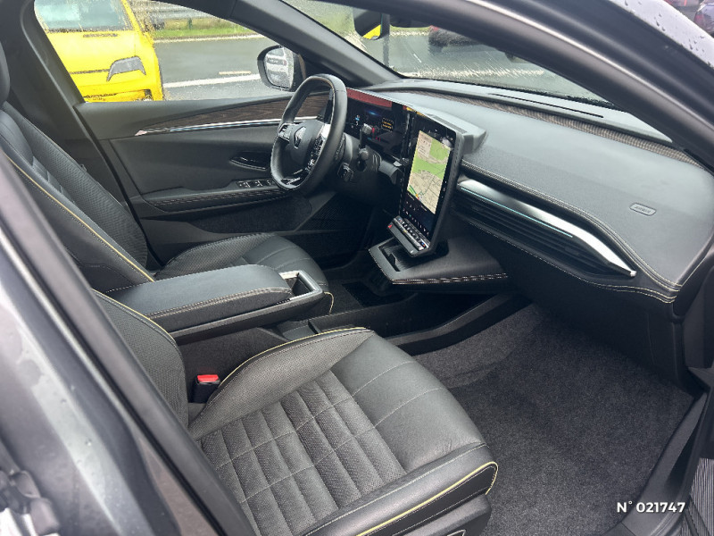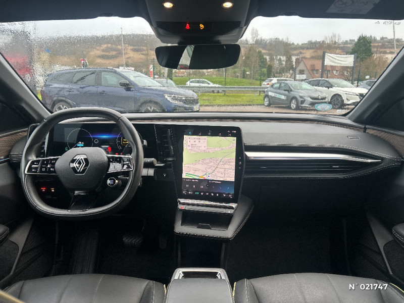 Signature lumineuse AV / Tapis couleur standard / Syst'me Multim'dia openR link 12" : navigation, services Google, audio premium Harman Kardon 9HP / Réplication smartphone / Commutation automatique des feux de route/croisement / Jantes alliage 20'' Noir brillant / Rétroviseur jour/nuit automatique / Câble de recharge pour Wallbox (mode 3 type 2, 5m) / Chargeur courant continu 130kW et courant alternatif 7kW (super) / Classe energetique A / Sellerie Cuir Riviera Noir Titane / Notice d'utilisation digitale embarqué dans le système multimédia du véhicule / Radars AV, AR et latéraux / Changement de mode de conduite via palettes au volant / Commutation automatique des feux et détecteur de pluie / Multi-sense / Tableau de bord full numérique / 4 Ports USB (2 AV et 2 AR) / Carte Renault accès et démarrage mains libres / Jantes alliage diamant'es 20" Enos / Câble pour borne de recharge (mode 3 type 2 monophasé, 5m) / Lame F1 Gold / Airbags latéraux, milieu AV et rideaux / Alerte de distance de sécurité / Alerte et assistant maintien de voie / Alerte d'oubli de ceinture de sécurité / Bandeau full LED AR avec effet 3D "moiré" / Détection de fatigue / Freinage actif d'urgence urbain (piéton + cycliste + intersection) / Kit de gonflage / Sièges avec système ISOFIX / Console de rangement haute avec accoudoir / Purificateur d'air / Si'ge AV r'glables 'lectriquement et massant, 6 positions + lombaire / Volant chauffant / Ambiance interieure E4 / Antenne Requin / Bouclier AV sport avec lame F1 / Eclairage d'accueil portes AV / Lame F1 Golf / Poignées de portes affleurantes / Projecteurs full LED directionnels avec fonction antibrouillard