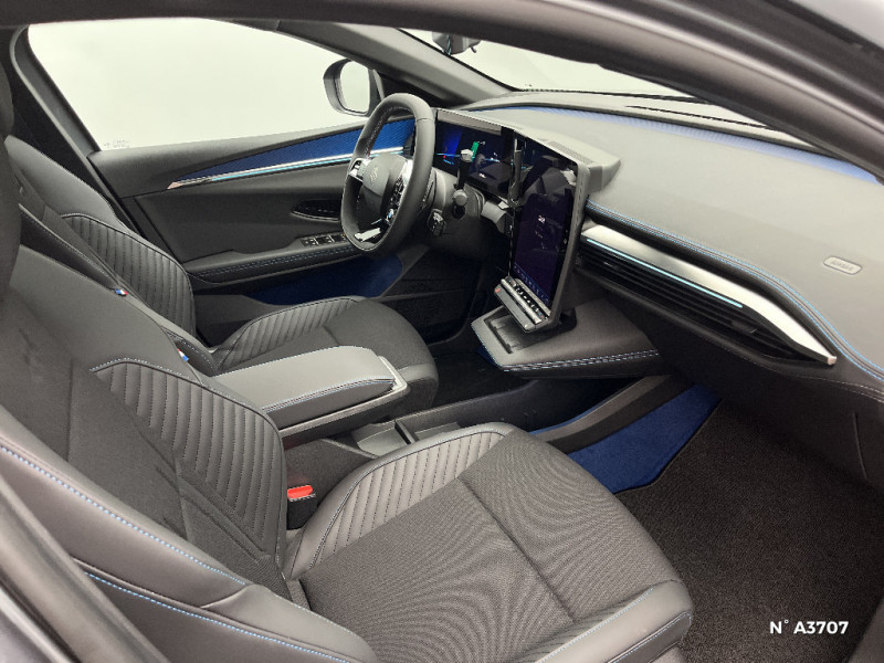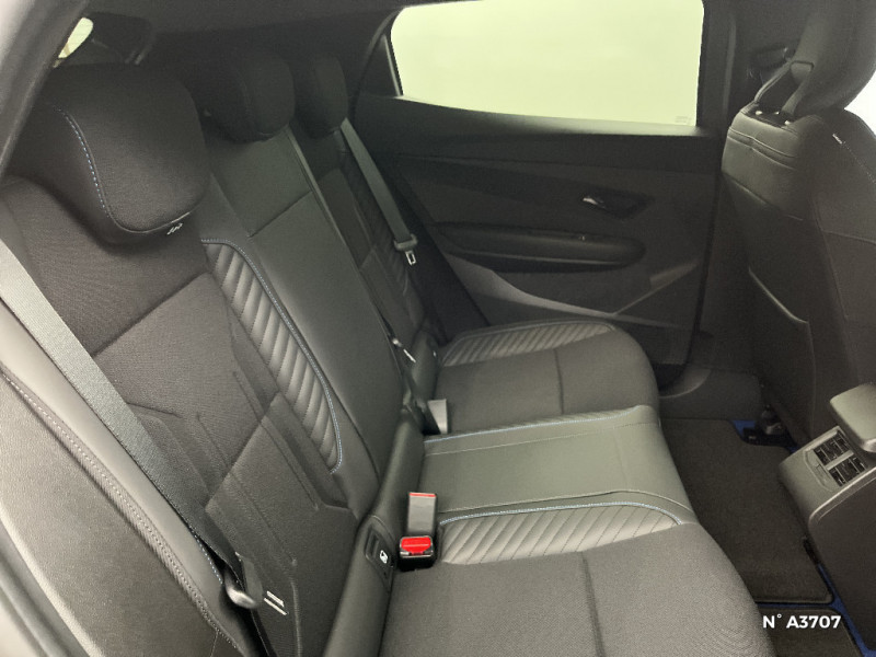 Sièges avec système ISOFIX / Sièges typés sport, volant Alpine, planche de bord spécifique, pièces décor bleues / Signature lumineuse AV / Système d'optimisation de la température batterie (charge rapide DC) / Système Multimédia openR link 12" : Google intégré, préconditionnement batterie pour charge DC, audio Arkamys Auditorium / Sellerie maille embossée recyclée / textile refined matelassé noir titane et surpiqûres bleu Alpine / Airbags latéraux, milieu AV et rideaux / Alerte de distance de sécurité / Radars AV, AR et latéraux / Réplication smartphone / Rétroviseur jour/nuit automatique / Adaptation intelligente de la vitesse / Tableau de bord full numérique / Volant en textile refined biosourcé / 4 Ports USB (2 AV et 2 AR) / Sièges AV électriques avec réglage lombaire + siège conducteur massant / Alerte détection de fatigue / Alerte d'oubli de ceinture de sécurité / Alerte et prévention sortie de voie (dont urgence) / Antenne Requin / Avertisseur d'angle mort et prévention sortie de voie en cas de dépassement / Bandeau full LED AR avec effet 3D "moiré" / Boîte de vitesse automatisée à variation continue / Bouclier AV sport avec lame F1 / Câble pour borne de recharge (mode 3 type 2 triphasé, 5m) / Caméra de recul digitale haute définition / Carte Renault accès et démarrage mains libres / Changement d'intensité du freinage régénératif par palettes / Chargeur AC 11 kW triphasé (compatible V2G/V2L) / Commutation automatique des feux de route/croisement / Console de rangement haute avec accoudoir central coulissant / Détection de la pression des pneumatiques / Direction assistée avec assistance variable / Finition extérieure esprit Alpine / Freinage automatique d'urgence en ville pour deux roues et piétons / Gestion automatique des feux diurnes et des essuie-glaces / Jantes alliage diamantées en noir verni fumé 20" speedway / Kit de réparation pour pneumatiques / Lame f1 gris schiste satin / Maintenance connectée, incluse pendant 8 ans / Mise à jour système (via firmware over the air FOTA), inclus pendant 5 ans / Moquette couleur bleu esprit Alpine / Multi-sense / Notice d'utilisation digitale embarqué dans le système multimédia du véhicule / Pack connected driving, inclus pendant 5 ans / Pack contrôle à distance (via l'application My Renault), inclus pendant 5 ans / Planche de bord textile biosourcé et recyclé gris chiné / Poignées de portes affleurantes / Pompe à chaleur / Projecteurs full LED directionnels avec fonction antibrouillard
