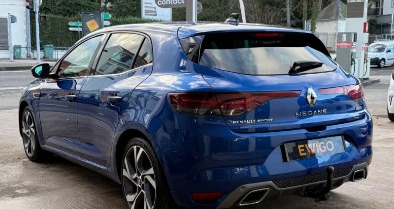 - NOS SERVICES ET PRESTATIONS COMPLÉMENTAIRES - - Visite virtuelle : avant de vous déplacer, visualisez votre futur véhicule sous toutes ses coutures . Contactez-nous pour en voir plus ! - Extension de garantie jusqu'à 60 mois. - Solutions de Financement de 12 à 84 mois. - Livraison dans toute la France métropolitaine (sur devis). - Reprise possible de votre ancien véhicule. - Les informations délivrées par cette annonce sont non contractuelles et données à titre indicatif. Packs disponibles (véhicules éligibles au Label) - Pack Clés en Main - 691 € TTC(¹)(²) Démarches (hors carte grise) | 1/4 de carburant | Nettoyage First | Garantie 6 mois | Label inclus? - Pack Sérénité - 891 € TTC(¹)(²)- Démarches (hors carte grise) | 1/2 de carburant | Nettoyage Confort | Garantie 12 mois | Label inclus? - Pack Prestige - 1.091 € TTC(¹)(²) Démarches (hors carte grise) | Plein complet | Nettoyage Prestige | Garantie 12 mois | Label inclus? + Surprise du chef - (¹) Les véhicules non éligibles au Label bénéficient de tarifs préférentiels. Veuillez contacter votre conseiller pour obtenir les conditions tarifaires applicables. (²) Tarif pour les véhicules deux roues motrices dont la valeur de vente est inférieure à 60 000 € TTC. - - Accès transport en commun depuis la gare Nancy centre / Possibilité de venir vous chercher à la gare de Nancy centre - Véhicule visible sur rendez-vous - Du Lundi au Samedi de 9h à 18h30 - EWIGO NANCY - 144 rue du faubourg des trois maisons - 54000 NANCY - Tel : [Coordonnées masquées] OPTIONS ET ÉQUIPEMENTS : Audio - Télécommunications : - Android auto - Apple CARPLAY - Commandes vocales - Info trafic - Kit téléphone main libre Bluetooth - Prise USB Conduite : - Accès et démarrage sans clé - Accès main libre - Affichage tête haute - Aide au démarrage en côte - BVA - Boîte de vitesse séquentielle - Capteur de pluie - Choix du mode de conduite - Démarrage sans clé - Essuies glaces automatiques - Frein de parking auto - Frein de parking électrique - Front assist - Indicateur de limitation de vitesse - Lane assist - Line assist - Régulateur de vitesse - Régulateur de vitesse adaptatif - Sièges sport - Système Start & stop - Système d'accès sans clé - adaptative cruise control Couleur : - Peinture métallisée - Peinture métallisée Bleu Iron Extérieur : - Aide au parking AR - Aide au parking AV/AR - Attelage - Caméra de recul - Ceinture de vitrage chromée - Jantes alu - Jantes alu 18 - Phares AR à led - Phares AV de jour à LED - Rétroviseurs rabattables électriquement - Rétroviseurs électriques et dégivrants - Vitres AR surteintées Intérieur : - 4 vitres électriques - Accoudoir central AR - Accoudoir central AV - Accoudoir central AV +AR - Banquette 1/3 - 2/3 - Climatisation automatique - Climatisation bi-zone - Climatisation multi-zones - Eclairage d'ambiance - Miroir de courtoisie chauffeur éclairé - Miroir de courtoisie passager éclairé - Ordinateur de bord - Porte gobelet avant - Pédalier sport - Rétroviseur intérieur électrochrome - Sièges baquets - Sièges chauffants AV - Virtual cockpit - Volant alu/cuir - Volant réglable hauteur - Volant réglable profondeur Pack : - Boîte de vitesse automatique - GPS Couleur - Mode Eco - Mode sport - Pack RS line - Pack extérieur - Pack intérieur - Régulateur / Limiteur de vitesse - Verrouillage centralisé - Volant multifonctions Sellerie : - Sellerie semi-cuir Sécurité : - ABS - ACC - Airbags - Alerte franchissement de lignes - Antibrouillards avant - Assistance au freinage d'urgence - Contrôle de pression des pneus - Détection somnolence - ESP - Feux automatiques - Fixations isofix - Maintien de voie - Phares antibrouillard - Radar anti-collision - Système de lecture des panneaux - Système de lecture des sms Autres équipements et informations : - 115 / 115CH - 5 places / 5 portes - Double des clés - Faible consommation - GPS Tactile - HUD - LOA / CREDIT BALLON - Line assist avec correction de trajectoire - MULTI SENSE - MULTI-SENSE - Megane 4 - Mode normal - Phares AV de jour - Pleins phares auto - Véhicule non fumeur