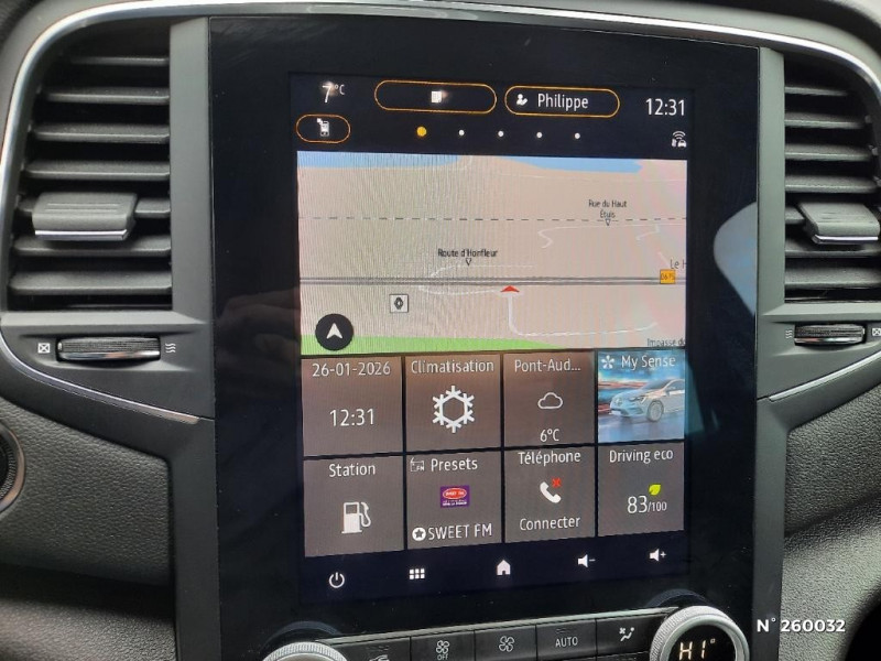 Aide au freinage actif d'urgence avec détection piétons / Alerte détection de fatigue / Commutation automatique des feux de route/croisement / Renault Multi-Sense (choix de modes de conduite) / Alerte Distance Sécurité / Alerte d'oubli de ceinture de sécurité / Harmonie Carbone foncé / Banquette AR avec accoudoir central / Console centrale de rangement avec accoudoir / Kit de gonflage et de réparation / Rétroviseur intérieur électrochrome / Déconnexion airbag passager AV / Tableau de bord avec écran numérique et personnalisable 10" / Appel d'Urgence Renault / Volant cuir avec surpiqures rouges et badging diamant / Projecteurs anti-brouillard LED avec fonction éclairage en virage / Antenne requin / Design exterieur RS-Line / Design intérieur RS-Line / Jantes Alliage 17'' R.S. Line Monthlery / Ligne d'échappement standard / Prestation RS-Line / Sellerie spécifique R.S. Line tissu avec surpiqures rouge / Séquence d'accueil à l'approche avec éclairage de signature lumineuse / EASYLINK 9,3'' avec navigation - Système multimédia avec radio DAB et navigation sur écran tactile 9 / Pare-soleil avec miroir de courtoisie éclairé / Sièges AV réglables en hauteur et siège conducteur avec réglage lombaire / Feux de jour à guide de lumière LED et effet 3D / Android Auto & Apple CarPlay