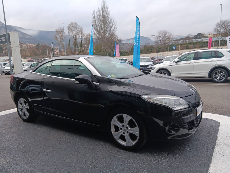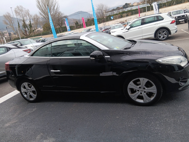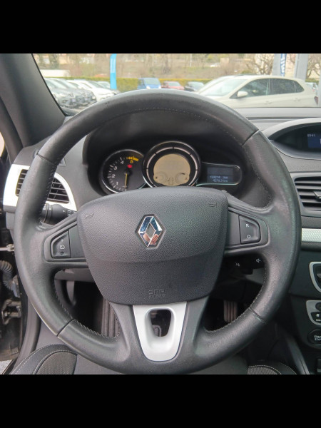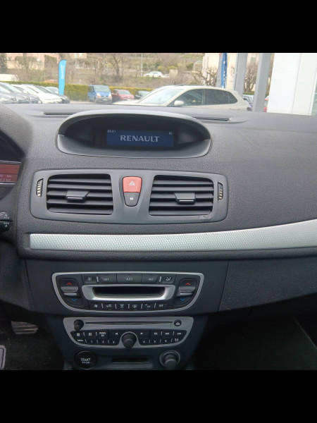 3ème feu stop à LED / Allumage automatique des feux de croisement et de l'essuie vitre / Arceaux de sécurité pyrotechniques automatiques / Climatisation régulée bi-zone 3 modes d'automatismes / Essuie-vitre AV à détection de pluie et à cadencement automatique / Toit ouvrant verre panoramique rétractable dans le coffre (fonctionnement entièrement automatique) / Volant et pommeau cuir / Airbags anti-sous marinage dans assises des sièges AV / Airbags frontaux conducteur et passager adapatifs (airbag passager déconnectable) / Airbags latéraux bi-chambre tête / bassin / thorax / Appuis-tête AV nouvelle génération anti "coup du lapin" / Bornier audio numérique "Plug & Music" / Boucliers AV et AR ton carrosserie / Carte de démarrage Renault "Mains libres" / Ceintures AR à 3 points avec limiteurs d'effort / Console centrale avec accoudoir / Coques de rétroviseurs noir grand brillant / Direction à assistance variable électrique / Eclairage d'accompagnement extérieur / Emplacement porte-canettes sur console centrale / Filtre d' habitacle / Grand toit en verre escamotable, encadré de montants noir grand brillant / Indicateur de température extérieure / Kit de réparation et bac de rangement dans le coffre / Kit fumeur / Lève-vitres électriques AV/AR à impulsion avec dispositif antipincement + fonctionnalité "Grand Air" d'ouverture simultanée de toutes les vitres / Montants de pare-brise et ceinture d'habitacle en finition chrome satiné / Pare-soleil conducteur et passager avec miroir de courtoisie / Planche de bord carbone très foncé intégrant une baguette peinte chrome satinéà motif "Cube 3D" / Poignées de portes chromées / Projecteurs double optiques halogènes / RadioSat 3D, Sound by Arkamys Bluetooth, CD MP3, avec bornier audio intégré en planche de bord / Recyclage de l'air / Rétroviseurs extérieurs électriques et dégivrants, asphérique côté conducteur / Système de fixation ISOFIX 2 points pour siège enfant aux places passager AV et AR / Système Easy Entry d'accès aux places AR / Trappe à carburant à ouverture intégrée / Témoin lumineux et sonore d'oubli de ceintures conducteur et passagers AV / Vitre anti-turbulances fixe, située entre les appuis-têtes AR / Vitres AV avec système "Short Drop"