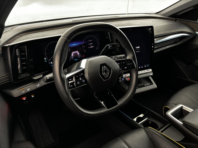 4 Ports USB (2 AV et 2 AR) / Airbags latéraux, milieu AV et rideaux / Alerte de distance de sécurité / Alerte d'oubli de ceinture de sécurité / Alerte et assistant maintien de voie / Ambiance interieure E4 / Antenne Requin / Bandeau full LED AR avec effet 3D "moiré" / Bouclier AV sport avec lame F1 / Câble pour borne de recharge (mode 3 type 2 monophasé, 5m) / Carte Renault accès et démarrage mains libres / Changement de mode de conduite via palettes au volant / Chargeur courant continu 130kW et courant alternatif 7kW (super) / Commutation automatique des feux de route/croisement / Commutation automatique des feux et détecteur de pluie / Console de rangement haute avec accoudoir / Détection de fatigue / Freinage actif d'urgence urbain (piéton + cycliste + intersection) / Jantes alliage diamantées 20" Enos / Kit de gonflage / Lame F1 Gold / Multi-sense / Notice d'utilisation digitale embarqué dans le système multimédia du véhicule / Poignées de portes affleurantes / Projecteurs full LED directionnels avec fonction antibrouillard / Purificateur d'air / Radars AV, AR et latéraux / Réplication smartphone / Rétroviseur jour/nuit automatique / Sellerie Cuir Riviera Noir Titane / Siège AV réglables électriquement et massant, 6 positions + lombaire / Sièges avec système ISOFIX / Signature lumineuse AV / Système Multimédia openR link 12" : navigation, services Google, audio premium Harman Kardon 9HP / Tableau de bord full numérique / Volant chauffant / / Véhicules équivalents: C4 - 308 - Golf