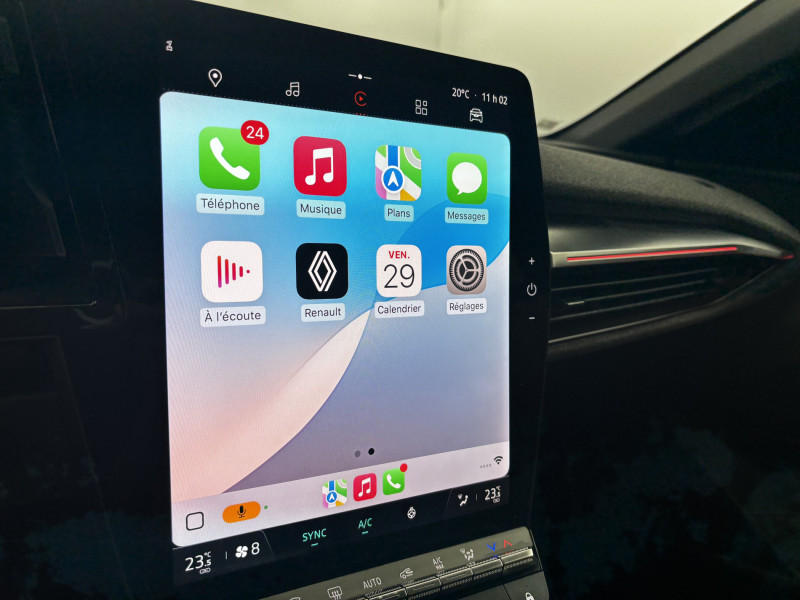 4 Ports USB (2 AV et 2 AR) / Airbags latéraux, milieu AV et rideaux / Alerte de distance de sécurité / Alerte d'oubli de ceinture de sécurité / Alerte et prévention sortie de voie (dont urgence) / Ambiance interieure E3 / Antenne Requin / Bandeau full LED AR avec effet 3D "moiré" / Bouclier AV sport avec lame F1 / Bouclier AV Sport avec lame F1 ton caisse / Câble pour borne de recharge (mode 3 type 2 triphasé, 5m) / Carte Renault accès et démarrage mains libres / Changement d'intensité du freinage régénératif par palettes / Chargeur courant continu 130kW et courant alternatif 22kW (optimal) / Commutation automatique des feux de route/croisement / Console de rangement haute avec accoudoir / Détection de fatigue / Freinage actif d'urgence urbain (piéton + cycliste + intersection) / Gestion automatique des feux diurnes et des essuie-glaces / Jantes alliage diamantées 20" Soren / Kit de gonflage / Multi-sense / Peinture mono-ton / Poignées de portes affleurantes / Pompe à chaleur / Projecteurs full LED directionnels avec fonction antibrouillard / Réplication smartphone / Rétroviseur jour/nuit automatique / Sellerie tissu recyclé gris chiné/textile enduit grainé recyclé noir titane/surpiqûres jaunes / Sièges avec système ISOFIX / Signature lumineuse AV / Système d'optimisation de la température batterie (charge rapide DC) / Système Multimédia openR link 12" : navigation, services Google, audio Arkamys Auditorium 6 HP / Tableau de bord full numérique / Tissus velours / Volant chauffant / / Véhicules équivalents: C4 - 308 - Golf