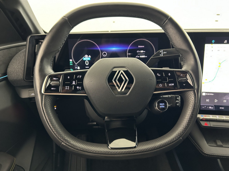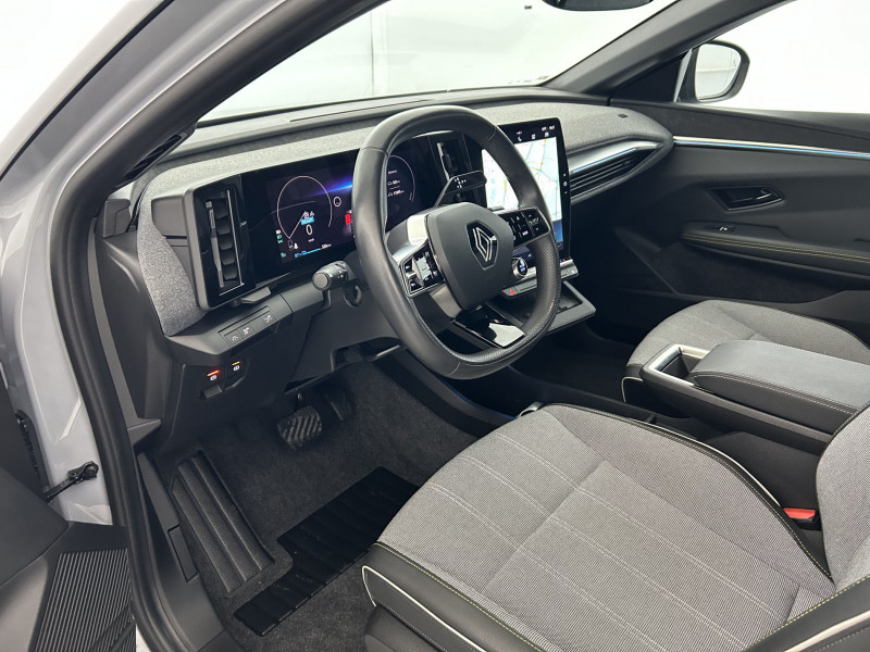 4 Ports USB (2 AV et 2 AR) / Airbags latéraux, milieu AV et rideaux / Alerte de distance de sécurité / Alerte d'oubli de ceinture de sécurité / Alerte et prévention sortie de voie (dont urgence) / Ambiance interieure E3 / Antenne Requin / Bandeau full LED AR avec effet 3D "moiré" / Bouclier AV sport avec lame F1 / Bouclier AV Sport avec lame F1 ton caisse / Câble pour borne de recharge (mode 3 type 2 triphasé, 5m) / Carte Renault accès et démarrage mains libres / Changement d'intensité du freinage régénératif par palettes / Chargeur courant continu 130kW et courant alternatif 22kW (optimal) / Commutation automatique des feux de route/croisement / Console de rangement haute avec accoudoir / Détection de fatigue / Freinage actif d'urgence urbain (piéton + cycliste + intersection) / Gestion automatique des feux diurnes et des essuie-glaces / Jantes alliage diamantées 20" Soren / Kit de gonflage / Multi-sense / Poignées de portes affleurantes / Pompe à chaleur / Projecteurs full LED directionnels avec fonction antibrouillard / Réplication smartphone / Rétroviseur jour/nuit automatique / Sellerie tissu recyclé gris chiné/textile enduit grainé recyclé noir titane/surpiqûres jaunes / Sièges avec système ISOFIX / Signature lumineuse AV / Système d'optimisation de la température batterie (charge rapide DC) / Système Multimédia openR link 12" : navigation, services Google, audio Arkamys Auditorium 6 HP / Tableau de bord full numérique / Tissus velours / Volant chauffant / / Véhicules équivalents: C4 - 308 - Golf