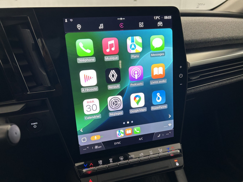 4 Ports USB (2 AV et 2 AR) / Airbags latéraux, milieu AV et rideaux / Alerte de distance de sécurité / Alerte d'oubli de ceinture de sécurité / Alerte et prévention sortie de voie (dont urgence) / Ambiance interieure Noir / Bouclier AV sport avec lame F1 / Bouclier AV Sport avec lame F1 ton caisse / Câble pour borne de recharge (mode 3 type 2 monophasé, 5m) / Carte Renault accès et démarrage mains libres / Changement d'intensité du freinage régénératif par palettes / Chargeur courant alternatif 7kW & courant continu 85 (standard) / 130 kW (super charge) (pic max) / Commutation automatique des feux de route/croisement / Console de rangement haute avec accoudoir / Détection de fatigue / Enjoliveurs bi-ton 18" terdam / Freinage actif d'urgence urbain (piéton + cycliste + intersection) / Gestion automatique des feux diurnes et des essuie-glaces / Kit de gonflage / Peinture mono-ton / Poignées de portes affleurantes / Pompe à chaleur / Projecteurs full LED directionnels avec fonction antibrouillard / Réplication smartphone / Rétroviseur manuel / Sellerie tissu recyclé natté gris chiné / surpiqûres claires / Sièges avec système ISOFIX / Sièges AV réglables 6 positions conducteur + lombaire, 4 positions passager / Système d'optimisation de la température batterie (charge rapide DC) / Système Multimédia openR link 9" : navigation, services Google, audio Arkamys Auditorium 6 HP / Tableau de bord full numérique / Tissus velours / Volant enduit grainé / / Véhicules équivalents: C4 - 308 - Golf