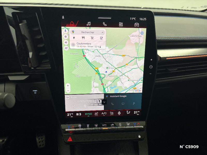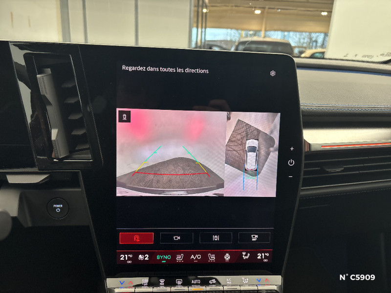 Caméra de recul digitale haute définition / Carte Renault accès et démarrage mains libres / Changement d'intensité du freinage régénératif par palettes / Chargeur AC 11 kW triphasé (compatible V2G/V2L) / Commutation automatique des feux de route/croisement / Console de rangement haute avec accoudoir central coulissant / Bandeau full LED AR avec effet 3D "moiré" / Détection de la pression des pneumatiques / Direction assistée avec assistance variable / Finition extérieure esprit Alpine / Freinage automatique d'urgence en ville pour deux roues et piétons / Gestion automatique des feux diurnes et des essuie-glaces / Jantes alliage diamantées en noir verni fumé 20" speedway / Kit de réparation pour pneumatiques / Lame f1 gris schiste satin / Maintenance connectée, incluse pendant 8 ans / Mise à jour système (via firmware over the air FOTA), inclus pendant 5 ans / Moquette couleur bleu esprit Alpine / Sièges avec système ISOFIX / Sièges typés sport, volant Alpine, planche de bord spécifique, pièces décor bleues / Signature lumineuse AV / Système d'optimisation de la température batterie (charge rapide DC) / Système Multimédia openR link 12" : Google intégré, préconditionnement batterie pour charge DC, audio Arkamys Auditorium / Tableau de bord full numérique / Volant en textile refined biosourcé / 4 Ports USB (2 AV et 2 AR) / Multi-sense / Sièges AV électriques avec réglage lombaire + siège conducteur massant / Pack contrôle à distance (via l¿application My Renault), inclus pendant 5 ans / Planche de bord textile biosourcé et recyclé gris chiné / Poignées de portes affleurantes / Notice d'utilisation digitale embarqué dans le système multimédia du véhicule / Pack connected driving, inclus pendant 5 ans / Pompe à chaleur / Projecteurs full LED directionnels avec fonction antibrouillard / Radars AV, AR et latéraux / Réplication smartphone / Rétroviseur jour/nuit automatique / Sellerie maille embossée recyclée / textile refined matelassé noir titane et surpiqûres bleu Alpine / Adaptation intelligente de la vitesse / Airbags latéraux, milieu AV et rideaux / Alerte de distance de sécurité / Alerte détection de fatigue / Alerte d'oubli de ceinture de sécurité / Alerte et prévention sortie de voie (dont urgence) / Antenne Requin / Avertisseur d'angle mort et prévention sortie de voie en cas de dépassement / Boîte de vitesse automatisée à variation continue / Bouclier AV sport avec lame F1 / Câble pour borne de recharge (mode 3 type 2 triphasé, 5m)