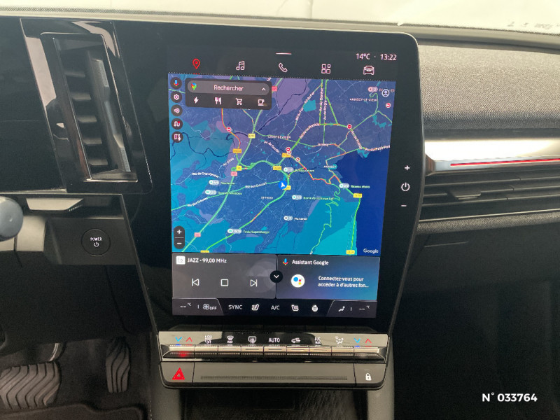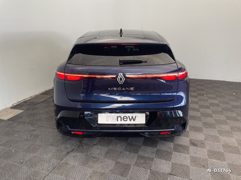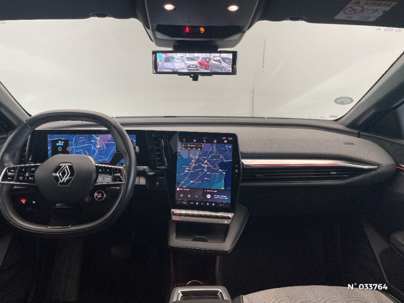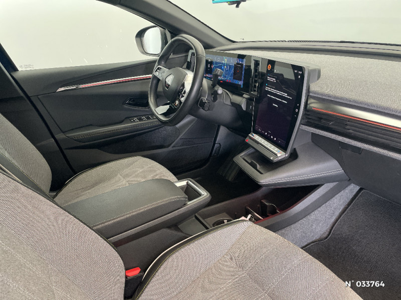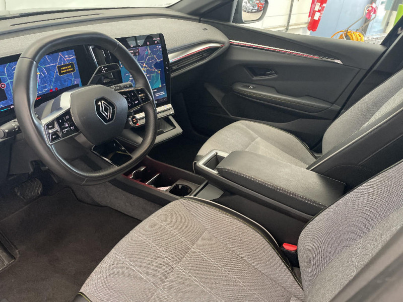 Siège AV réglables 6 positions conducteur + lombaire / Volant chauffant / Réplication smartphone / Commutation automatique des feux de route/croisement / Ambiance interieure E3 / Antenne Requin / Bouclier AV sport avec lame F1 / Eclairage d'accueil portes AV / Poignées de portes affleurantes / Projecteurs full LED directionnels avec fonction antibrouillard / Sellerie mixte simili cuir / textile recyclé ELZA REC gris chiné / Signature lumineuse AV / Tapis couleur standard / Système Multimédia openR link 12" : navigation, services Google, audio Arkamys Auditorium 6 HP / Alerte de distance de sécurité / Alerte et assistant maintien de voie / Alerte d'oubli de ceinture de sécurité / Bandeau full LED AR avec effet 3D "moiré" / Détection de fatigue / Freinage actif d'urgence urbain (piéton + cycliste + intersection) / Kit de gonflage / Sièges avec système ISOFIX / Câble de recharge pour Wallbox (mode 3 type 2, 5m) / Chargeur courant continu 130kW et courant alternatif 22kW (optimal) / Classe energetique A / Notice d?utilisation digitale embarqué dans le système multimédia du véhicule / Jantes alliage diamantées 20" Soren / Câble pour borne de recharge (mode 3 type 2 triphasé, 5m) / Airbags latéraux, milieu AV et rideaux / Tableau de bord full numérique / 4 Ports USB (2 AV et 2 AR) / Rétroviseur jour/nuit automatique / Changement de mode de conduite via palettes au volant / Commutation automatique des feux et détecteur de pluie / Multi-sense / Peinture mono-ton / Bouclier AV Sport avec lame F1 ton caisse / Carte Renault accès et démarrage mains libres / Console de rangement haute avec accoudoir / Purificateur d'air
