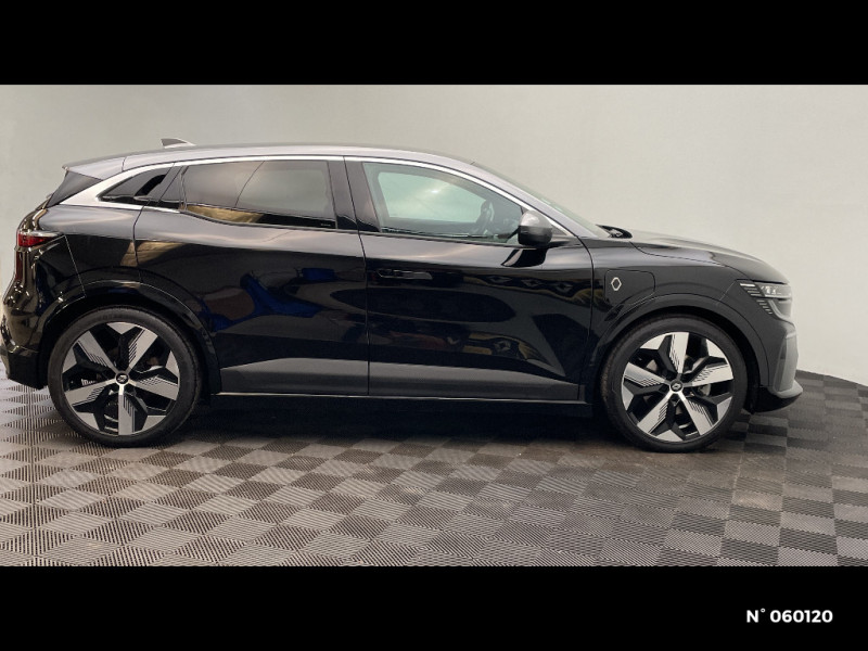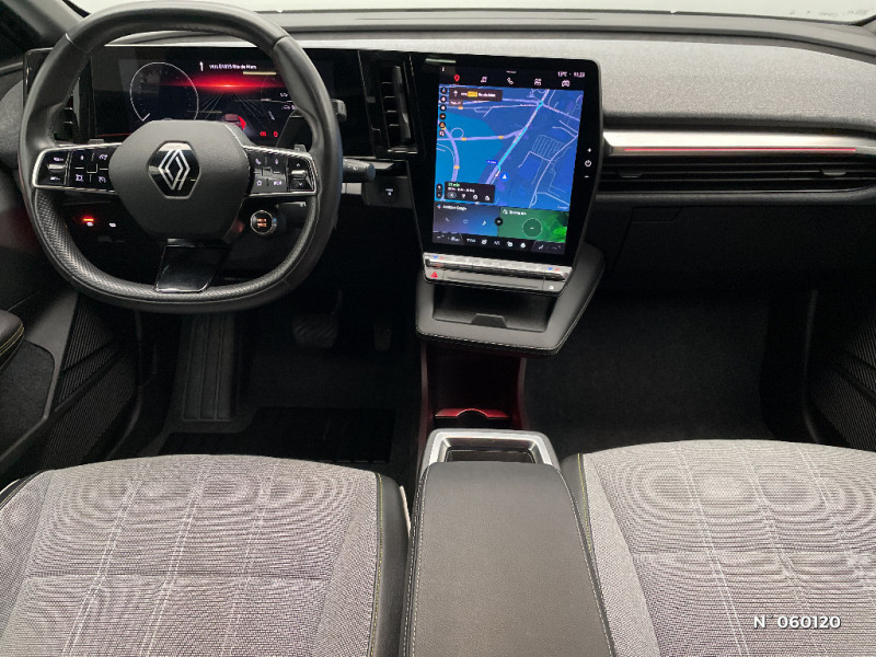 Câble de recharge pour Wallbox (mode 3 type 2, 5m) / Chargeur courant continu 130kW et courant alternatif 22kW (optimal) / Carte Renault accès et démarrage mains libres / Console de rangement haute avec accoudoir / Purificateur d'air / Siège AV réglables 6 positions conducteur + lombaire / Volant chauffant / Ambiance interieure E3 / Antenne Requin / Bouclier AV sport avec lame F1 / Eclairage d'accueil portes AV / Jantes alliage diamantées 20" Soren / Poignées de portes affleurantes / Projecteurs full LED directionnels avec fonction antibrouillard / Sellerie mixte simili cuir / textile recyclé ELZA REC gris chiné / Signature lumineuse AV / Tapis couleur standard / Tissus velours / Système Multimédia openR link 12" : navigation, services Google, audio Arkamys Auditorium 6 HP / Réplication smartphone / Commutation automatique des feux de route/croisement / Rétroviseur jour/nuit automatique / Changement de mode de conduite via palettes au volant / Commutation automatique des feux et détecteur de pluie / Multi-sense / Peinture mono-ton / Bouclier AV Sport avec lame F1 ton caisse / Tableau de bord full numérique / 4 Ports USB (2 AV et 2 AR) / Classe energetique A / Notice d?utilisation digitale embarqué dans le système multimédia du véhicule / Câble pour borne de recharge (mode 3 type 2 triphasé, 5m) / Airbags latéraux, milieu AV et rideaux / Alerte de distance de sécurité / Alerte et assistant maintien de voie / Alerte d'oubli de ceinture de sécurité / Bandeau full LED AR avec effet 3D "moiré" / Détection de fatigue / Freinage actif d'urgence urbain (piéton + cycliste + intersection) / Kit de gonflage / Sièges avec système ISOFIX