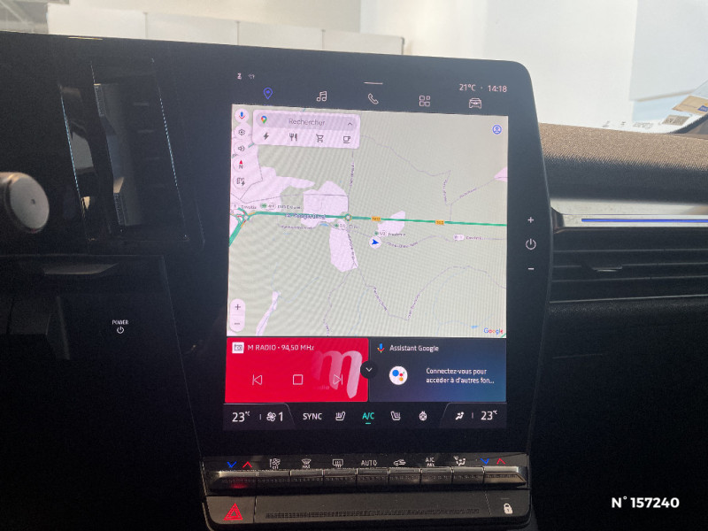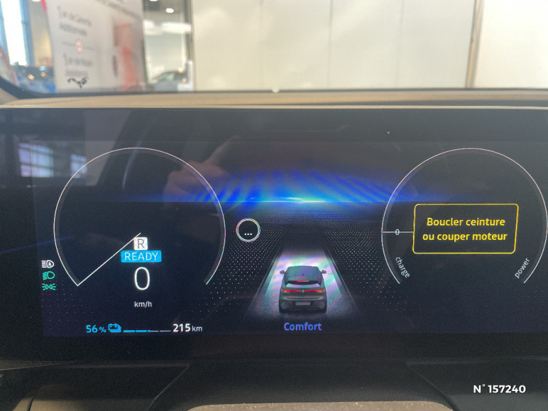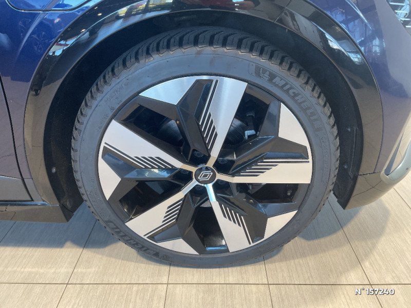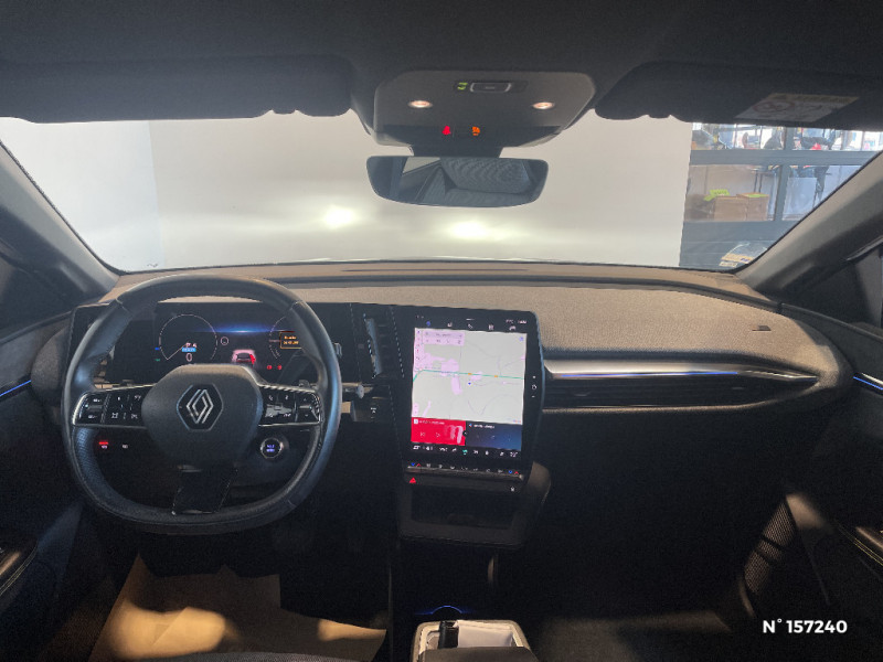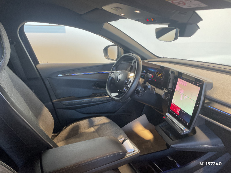Freinage actif d'urgence urbain (piéton + cycliste + intersection) / Kit de gonflage / Sièges avec système ISOFIX / Câble de recharge pour Wallbox (mode 3 type 2, 5m) / Chargeur courant continu 130kW et courant alternatif 22kW (optimal) / Classe energetique A / Notice d?utilisation digitale embarqué dans le système multimédia du véhicule / Câble pour borne de recharge (mode 3 type 2 triphasé, 5m) / Alerte de distance de sécurité / Alerte et assistant maintien de voie / Alerte d'oubli de ceinture de sécurité / Bandeau full LED AR avec effet 3D "moiré" / Détection de fatigue / Sellerie mixte simili cuir / textile recyclé ELZA REC gris chiné / Signature lumineuse AV / Tapis couleur standard / Tissus velours / Système Multimédia openR link 12" : navigation, services Google, audio Arkamys Auditorium 6 HP / Airbags latéraux, milieu AV et rideaux / Changement de mode de conduite via palettes au volant / Commutation automatique des feux et détecteur de pluie / Multi-sense / Peinture mono-ton / Bouclier AV Sport avec lame F1 ton caisse / Tableau de bord full numérique / 4 Ports USB (2 AV et 2 AR) / Carte Renault accès et démarrage mains libres / Console de rangement haute avec accoudoir / Purificateur d'air / Siège AV réglables 6 positions conducteur + lombaire / Volant chauffant / Ambiance interieure E3 / Antenne Requin / Bouclier AV sport avec lame F1 / Eclairage d'accueil portes AV / Jantes alliage diamantées 20" Soren / Poignées de portes affleurantes / Projecteurs full LED directionnels avec fonction antibrouillard / Réplication smartphone / Commutation automatique des feux de route/croisement / Rétroviseur jour/nuit automatique