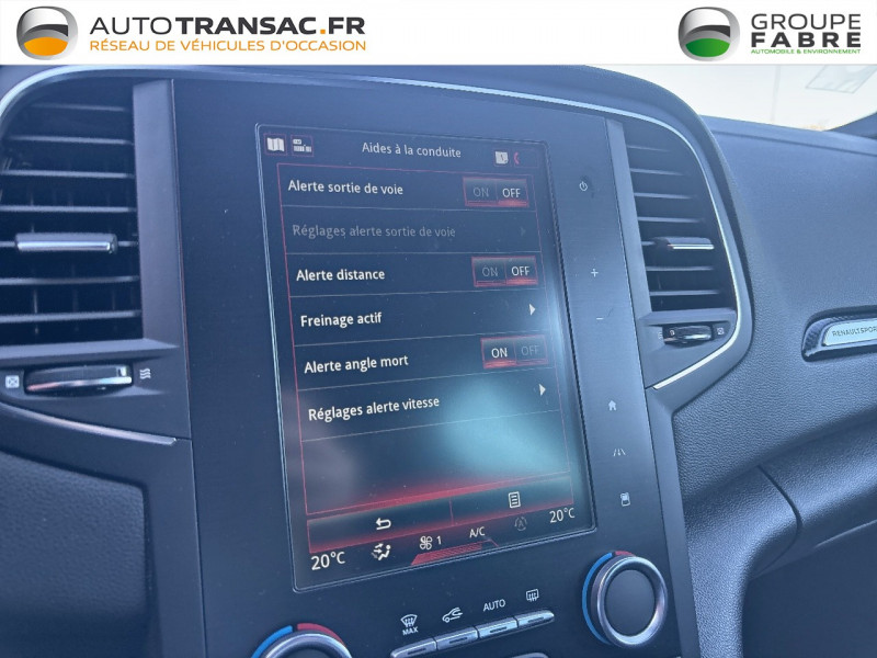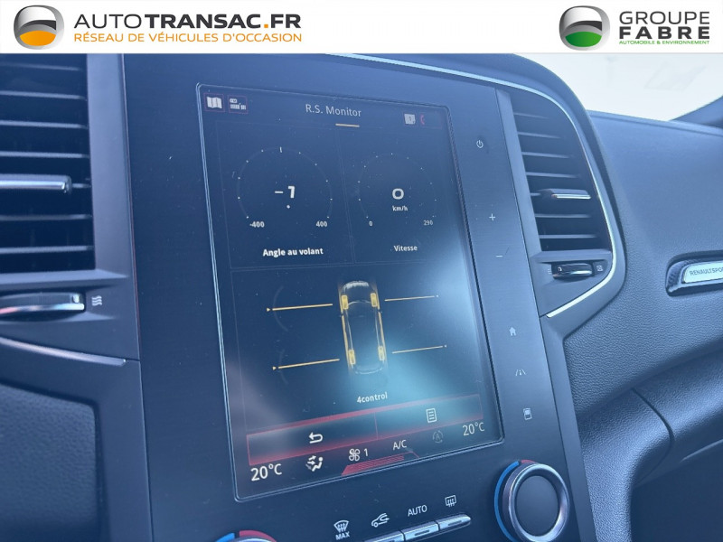 Caméra de recul et aides au parking AV/AR / Feux de jour à guide de lumière LED et effet 3D / Jantes alliage 18'' Estoril Gun Metal Grey / Alerte d'oubli de ceinture de sécurité / Alerte de distance de sécurité / Android Auto & Apple CarPlay / Banquette AR avec accoudoir central / Cartographie Europe / Compteurs TFT 7" avec matrice couleur / Console centrale de rangement avec accoudoir / Déconnexion airbag passager AV / Ecran 8,7'' DAB / Etriers de frein gris / Harmonie Carbone foncé / Kit de gonflage et de réparation / Pare-soleil avec miroir de courtoisie éclairé / Renault Multi-Sense (choix de modes de conduite) / RS Vision / Rétroviseur intérieur électrochrome / Sièges AV réglables en hauteur et siège conducteur avec réglage lombaire / Système 4Control à 4 roues directrices