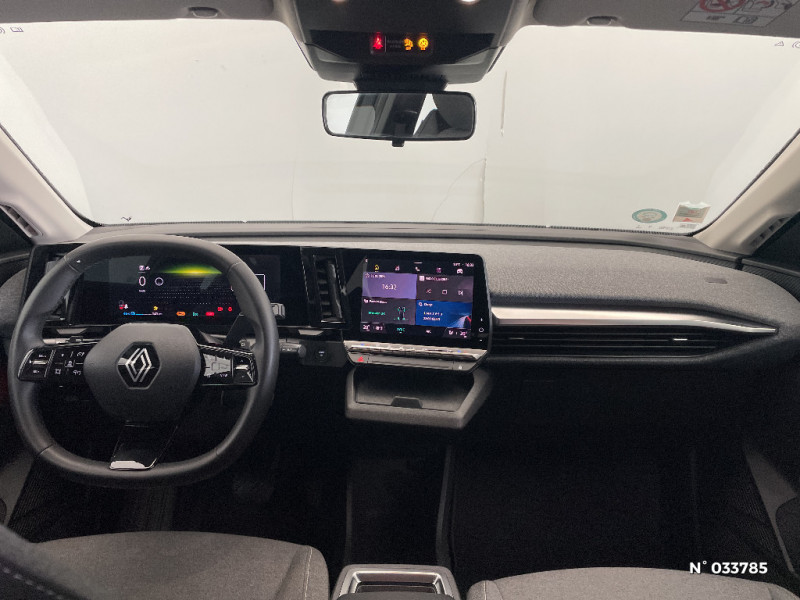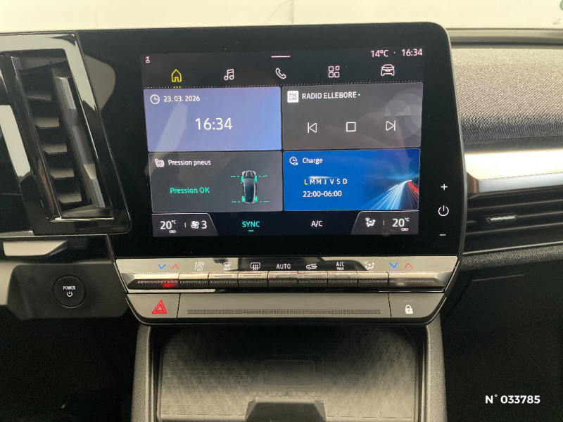 Réplication smartphone / Rétroviseur manuel / Tableau de bord full numérique / Carte Renault accès et démarrage mains libres / Volant non chauffant / Changement de mode de conduite via palettes au volant / Commutation automatique des feux et essuie-glaces manuels / Peinture mono-ton / Bouclier AV Sport avec lame F1 ton caisse / Ambiance interieure Noir / Bouclier AV sport avec lame F1 / Poignées de portes affleurantes / Signature lumineuse AV / Système Multimédia openR link 9" avec audio Arkamys Classic 4 HP / Airbags latéraux, milieu AV et rideaux / Alerte de distance de sécurité / Alerte d'oubli de ceinture de sécurité / Détection de fatigue / Freinage actif d'urgence urbain (piéton + cycliste + intersection) / Kit de gonflage / Sièges avec système ISOFIX / Gestion automatique des feux diurnes et essuie-glaces manuels / Commutation manuelle des feux de route / croisement / Volant enduit grainé / Changement d'intensité du freinage régénératif par palettes / Chargeur courant alternatif 7kW & courant continu 85 (standard) / 130 kW (super charge) (pic max) / Chargeur courant continu 130kW et courant alternatif 7kW (super) / Notice d?utilisation digitale embarqué dans le système multimédia du véhicule / Câble pour borne de recharge (mode 3 type 2 monophasé, 5m) / Classe energetique 0 / Alerte et prévention sortie de voie (dont urgence) / Sellerie textile noir avec surpiqures beige argent
