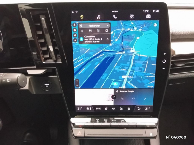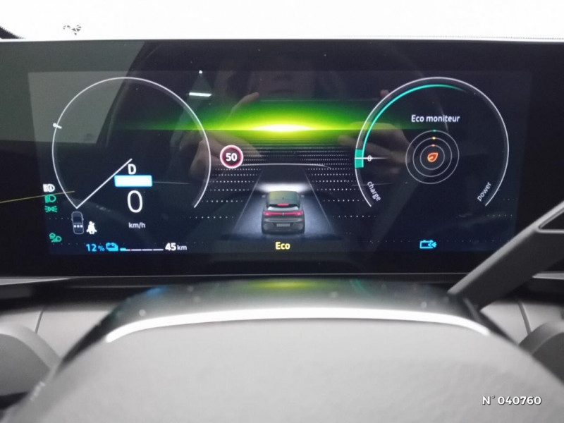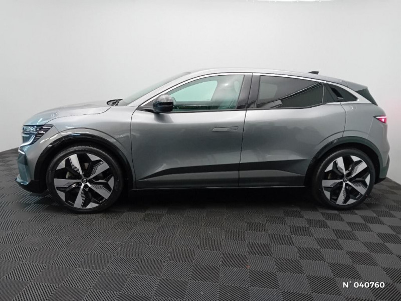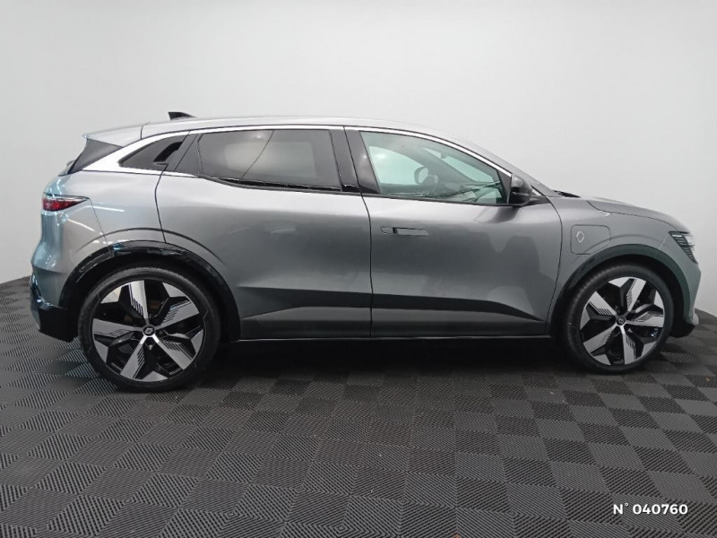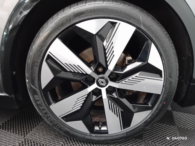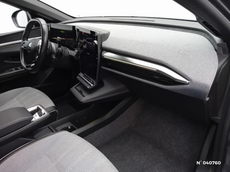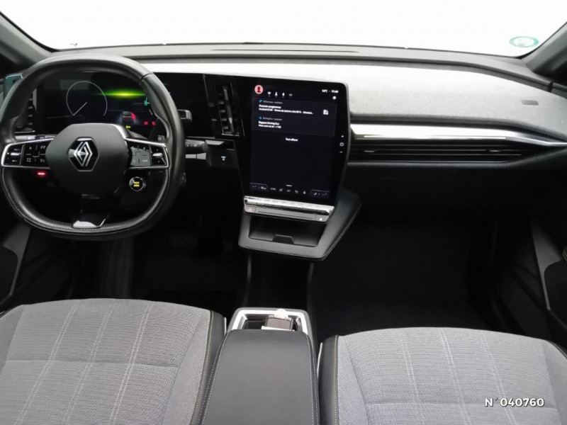 Freinage actif d'urgence urbain (piéton + cycliste + intersection) / Kit de gonflage / Sièges avec système ISOFIX / Eclairage d'accueil portes AV / Jantes alliage diamantées 20" Soren / Poignées de portes affleurantes / Projecteurs full LED directionnels avec fonction antibrouillard / Sellerie mixte simili cuir / textile recyclé ELZA REC gris chiné / Signature lumineuse AV / Ambiance interieure E3 / Antenne Requin / Bouclier AV sport avec lame F1 / Câble de recharge pour Wallbox (mode 3 type 2, 5m) / Chargeur courant continu 130kW et courant alternatif 7kW (super) / Classe energetique A / Notice d?utilisation digitale embarqué dans le système multimédia du véhicule / Câble pour borne de recharge (mode 3 type 2 monophasé, 5m) / Tapis couleur standard / Système Multimédia openR link 12" : navigation, services Google, audio Arkamys Auditorium 6 HP / Airbags latéraux, milieu AV et rideaux / Tableau de bord full numérique / 4 Ports USB (2 AV et 2 AR) / Carte Renault accès et démarrage mains libres / Console de rangement haute avec accoudoir / Purificateur d'air / Siège AV réglables 6 positions conducteur + lombaire / Volant chauffant / Réplication smartphone / Commutation automatique des feux de route/croisement / Rétroviseur jour/nuit automatique / Changement de mode de conduite via palettes au volant / Commutation automatique des feux et détecteur de pluie / Multi-sense / Peinture mono-ton / Bouclier AV Sport avec lame F1 ton caisse / Alerte de distance de sécurité / Alerte et assistant maintien de voie / Alerte d'oubli de ceinture de sécurité / Bandeau full LED AR avec effet 3D "moiré" / Détection de fatigue