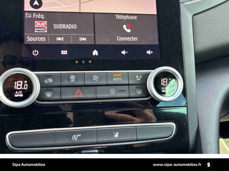 Aide au freinage actif d'urgence avec détection piétons / Alerte de distance de sécurité / Alerte détection de fatigue / Alerte d'oubli de ceinture de sécurité / Android Auto & Apple CarPlay / Antenne requin / Appel d'Urgence Renault / Carte Renault avec accès et démarrage mains libres avec fermeture à l'éloignement / Commutation automatique des feux de route/croisement / Compartimentage de coffre / Console centrale de rangement avec accoudoir / EASYLINK avec écran 9,3'' vertical et navigation : système multimédia avec radio DAB et navigation / Feux de jour à guide de lumière LED et effet 3D / Harmonie Carbone foncé / Jantes alliage 16" Impulse diamantées Gris Erbé / Kit de gonflage et de réparation / Lève-vitres AR anti-pincement / Pare-soleil avec miroir de courtoisie éclairé / Pré-équipement alarme / Renault Multi-sense / Rétroviseur intérieur électrochrome / Sellerie mixte textile enduit grainé / tissu noir / Séquence d'accueil et de fermeture avec détection à l'approche / Siège conducteur réglable manuellement en hauteur et lombaire, mise en tablette du siège passager / Système ISOFIX (i-Size) aux places AR (latérales) et passager AV / Tableau de bord avec écran numérique et personnalisable 7"
