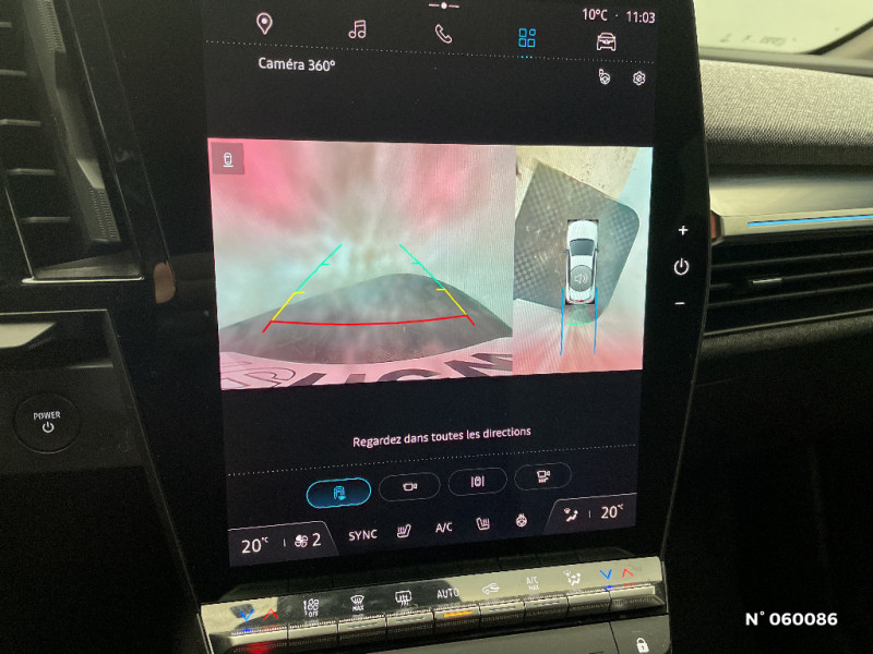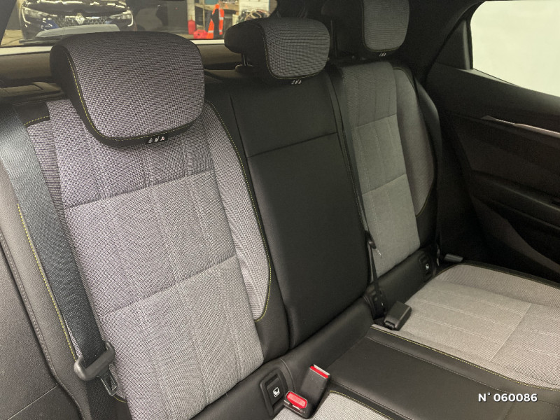 Console de rangement haute avec accoudoir / Réplication smartphone / Volant chauffant / Ambiance interieure E3 / Antenne Requin / Bouclier AV sport avec lame F1 / Poignées de portes affleurantes / Projecteurs full LED directionnels avec fonction antibrouillard / Sellerie mixte simili cuir / textile recyclé ELZA REC gris chiné / Signature lumineuse AV / Tissus velours / Système Multimédia openR link 12" : navigation, services Google, audio Arkamys Auditorium 6 HP / Airbags latéraux, milieu AV et rideaux / Alerte de distance de sécurité / Alerte d'oubli de ceinture de sécurité / Bandeau full LED AR avec effet 3D "moiré" / Détection de fatigue / Freinage actif d'urgence urbain (piéton + cycliste + intersection) / Kit de gonflage / Sièges avec système ISOFIX / Chargeur courant continu 130kW et courant alternatif 7kW (super) / Système d'optimisation de la température batterie (charge rapide DC) / Gestion automatique des feux diurnes et des essuie-glaces / Changement d'intensité du freinage régénératif par palettes / Chargeur courant alternatif 7kW & courant continu 85 (standard) / 130 kW (super charge) (pic max) / Sellerie tissu recyclé gris chiné/textile enduit grainé recyclé noir titane/surpiqures jaunes / Pompe à chaleur / Notice d?utilisation digitale embarqué dans le système multimédia du véhicule / Jantes alliage diamantées 20" Soren / Câble pour borne de recharge (mode 3 type 2 monophasé, 5m) / Classe energetique 0 / Alerte et prévention sortie de voie (dont urgence) / Commutation automatique des feux de route/croisement / Rétroviseur jour/nuit automatique / Changement de mode de conduite via palettes au volant / Commutation automatique des feux et détecteur de pluie / Multi-sense / Peinture mono-ton / Bouclier AV Sport avec lame F1 ton caisse / Tableau de bord full numérique / 4 Ports USB (2 AV et 2 AR) / Carte Renault accès et démarrage mains libres