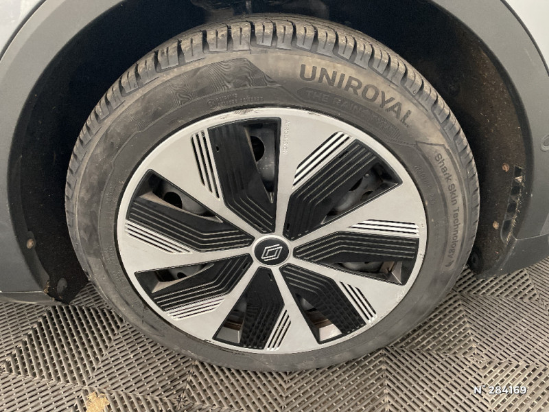 Changement de mode de conduite via palettes au volant / Sellerie textile recyclé EVA REC gris chiné / Bouclier AV Sport avec lame F1 ton caisse / Rétroviseur manuel / Tableau de bord full numérique / 4 Ports USB (2 AV et 2 AR) / Carte Renault accès et démarrage mains libres / Console de rangement haute avec accoudoir / Réplication smartphone / Commutation automatique des feux de route/croisement / Enjoliveurs bi-ton 18" terdam / Câble pour borne de recharge (mode 3 type 2 monophasé, 5m) / Alerte et prévention sortie de voie (dont urgence) / Système d'optimisation de la température batterie (charge rapide DC) / Gestion automatique des feux diurnes et des essuie-glaces / Volant enduit grainé / Changement d'intensité du freinage régénératif par palettes / Système Multimédia openR link 9" : navigation, services Google, audio Arkamys Auditorium 6 HP / Chargeur courant alternatif 7kW & courant continu 85 (standard) / 130 kW (super charge) (pic max) / Sellerie tissu recyclé natté gris chiné / surpiqures claires / Tissus velours / Système Multimédia openR link 12" : navigation, services Google, audio Arkamys Auditorium 6 HP / Airbags latéraux, milieu AV et rideaux / Alerte de distance de sécurité / Alerte d'oubli de ceinture de sécurité / Détection de fatigue / Freinage actif d'urgence urbain (piéton + cycliste + intersection) / Kit de gonflage / Sièges avec système ISOFIX / Chargeur courant continu 130kW et courant alternatif 7kW (super) / Sièges avant réglables 6 positions conducteur + lombaire, 4 positions passager / Pompe à chaleur / Ambiance interieure Noir / Bouclier AV sport avec lame F1 / Poignées de portes affleurantes / Projecteurs full LED directionnels avec fonction antibrouillard / Peinture mono-ton