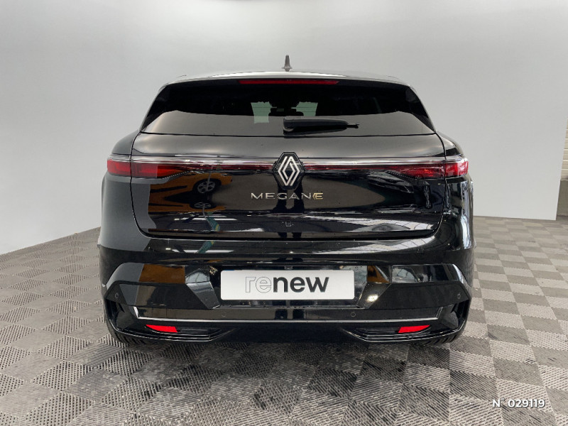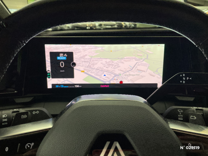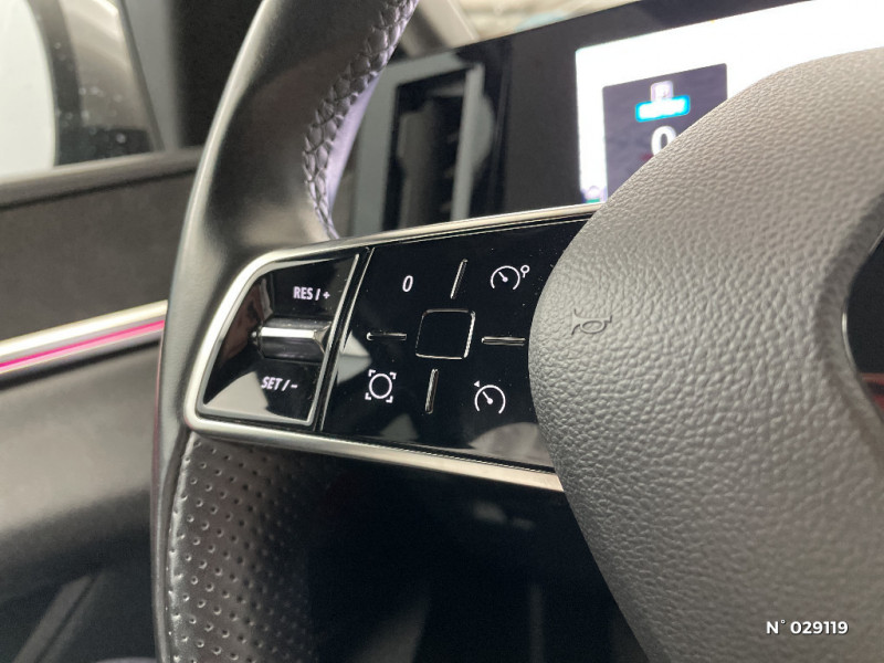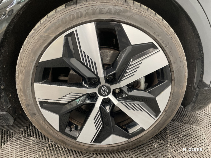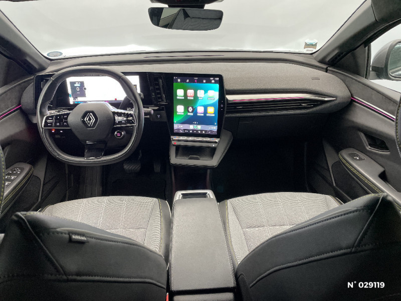 Changement de mode de conduite via palettes au volant / Commutation automatique des feux et détecteur de pluie / Multi-sense / Tableau de bord full numérique / 4 Ports USB (2 AV et 2 AR) / Carte Renault accès et démarrage mains libres / Console de rangement haute avec accoudoir / Peinture mono-ton / Bouclier AV Sport avec lame F1 ton caisse / Peinture opaque / Réplication smartphone / Commutation automatique des feux de route/croisement / Rétroviseur jour/nuit automatique / Purificateur d'air / Siège AV réglables 6 positions conducteur + lombaire / Volant chauffant / Ambiance interieure E3 / Antenne Requin / Bouclier AV sport avec lame F1 / Poignées de portes affleurantes / Projecteurs full LED directionnels avec fonction antibrouillard / Sellerie mixte simili cuir / textile recyclé ELZA REC gris chiné / Signature lumineuse AV / Système Multimédia openR link 12" : navigation, services Google, audio Arkamys Auditorium 6 HP / Airbags latéraux, milieu AV et rideaux / Alerte de distance de sécurité / Alerte et assistant maintien de voie / Alerte d'oubli de ceinture de sécurité / Bandeau full LED AR avec effet 3D "moiré" / Détection de fatigue / Freinage actif d'urgence urbain (piéton + cycliste + intersection) / Kit de gonflage / Sièges avec système ISOFIX / Chargeur courant continu 130kW et courant alternatif 7kW (super) / Notice d?utilisation digitale embarqué dans le système multimédia du véhicule / Jantes alliage diamantées 20" Soren / Câble pour borne de recharge (mode 3 type 2 monophasé, 5m) / Classe energetique 0 / Alerte et prévention sortie de voie (dont urgence)