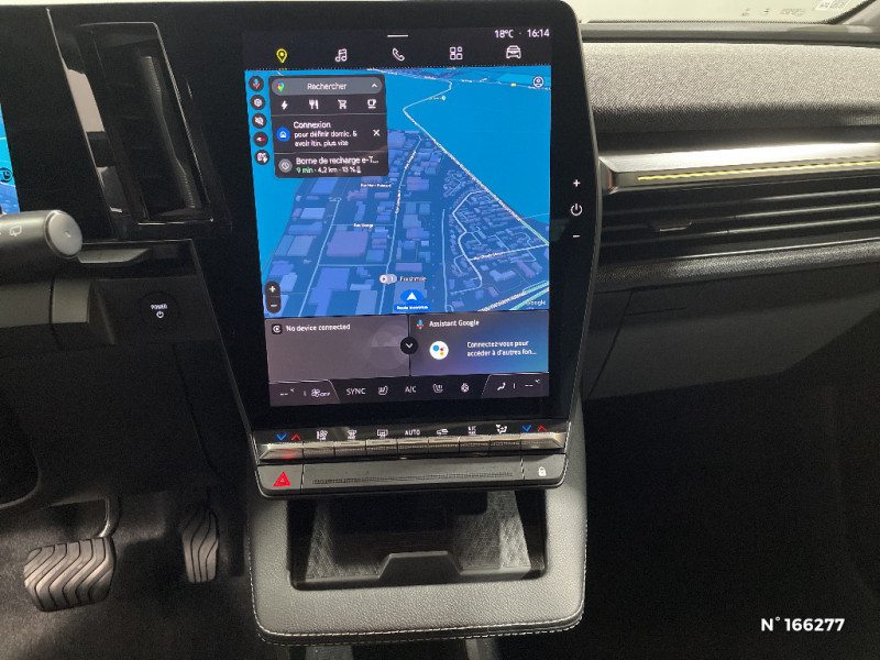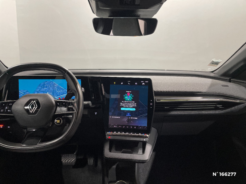 Réplication smartphone / Multi-sense / Commutation automatique des feux de route/croisement / Rétroviseur jour/nuit automatique / Changement de mode de conduite via palettes au volant / Tissus velours / Système Multimédia openR link 12" : navigation, services Google, audio Arkamys Auditorium 6 HP / Airbags latéraux, milieu AV et rideaux / Alerte de distance de sécurité / Alerte d'oubli de ceinture de sécurité / Alerte et prévention sortie de voie (dont urgence) / Système d'optimisation de la température batterie (charge rapide DC) / Gestion automatique des feux diurnes et des essuie-glaces / Changement d'intensité du freinage régénératif par palettes / Chargeur courant alternatif 7kW & courant continu 85 (standard) / 130 kW (super charge) (pic max) / Ambiance interieure E3 / Antenne Requin / Bouclier AV sport avec lame F1 / Poignées de portes affleurantes / Projecteurs full LED directionnels avec fonction antibrouillard / Sellerie mixte simili cuir / textile recyclé ELZA REC gris chiné / Signature lumineuse AV / Peinture mono-ton / Bouclier AV Sport avec lame F1 ton caisse / Tableau de bord full numérique / 4 Ports USB (2 AV et 2 AR) / Carte Renault accès et démarrage mains libres / Console de rangement haute avec accoudoir / Volant chauffant / Bandeau full LED AR avec effet 3D "moiré" / Détection de fatigue / Freinage actif d'urgence urbain (piéton + cycliste + intersection) / Kit de gonflage / Sièges avec système ISOFIX / Chargeur courant continu 130kW et courant alternatif 7kW (super) / Pompe à chaleur / Jantes alliage diamantées 20" Soren / Câble pour borne de recharge (mode 3 type 2 monophasé, 5m) / Sellerie tissu recyclé gris chiné/textile enduit grainé recyclé noir titane/surpiqures jaunes