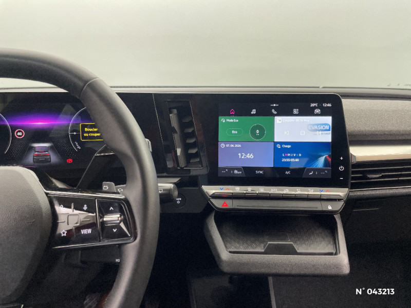 Notice d?utilisation digitale embarqué dans le système multimédia du véhicule / Peinture opaque / Réplication smartphone / Changement de mode de conduite via palettes au volant / Commutation automatique des feux et détecteur de pluie / Câble pour borne de recharge (mode 3 type 2 monophasé, 5m) / Classe energetique 0 / Alerte et prévention sortie de voie (dont urgence) / Sellerie textile noir avec surpiqures beige argent / Gestion automatique des feux diurnes et essuie-glaces manuels / Commutation manuelle des feux de route / croisement / Volant enduit grainé / Poignées de portes affleurantes / Signature lumineuse AV / Système Multimédia openR link 9" avec audio Arkamys Classic 4 HP / Airbags latéraux, milieu AV et rideaux / Alerte de distance de sécurité / Alerte et assistant maintien de voie / Alerte d'oubli de ceinture de sécurité / Détection de fatigue / Freinage actif d'urgence urbain (piéton + cycliste + intersection) / Kit de gonflage / Commutation automatique des feux et essuie-glaces manuels / Peinture mono-ton / Bouclier AV Sport avec lame F1 ton caisse / Rétroviseur manuel / Tableau de bord full numérique / 4 Ports USB (2 AV et 2 AR) / Carte Renault accès et démarrage mains libres / Console de rangement haute avec accoudoir / Purificateur d'air / Volant non chauffant / Ambiance interieure Noir / Bouclier AV sport avec lame F1 / Sièges avec système ISOFIX / Chargeur courant alternatif 7kW (standard) / Chargeur courant continu 130kW et courant alternatif 7kW (super)