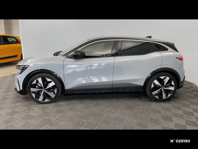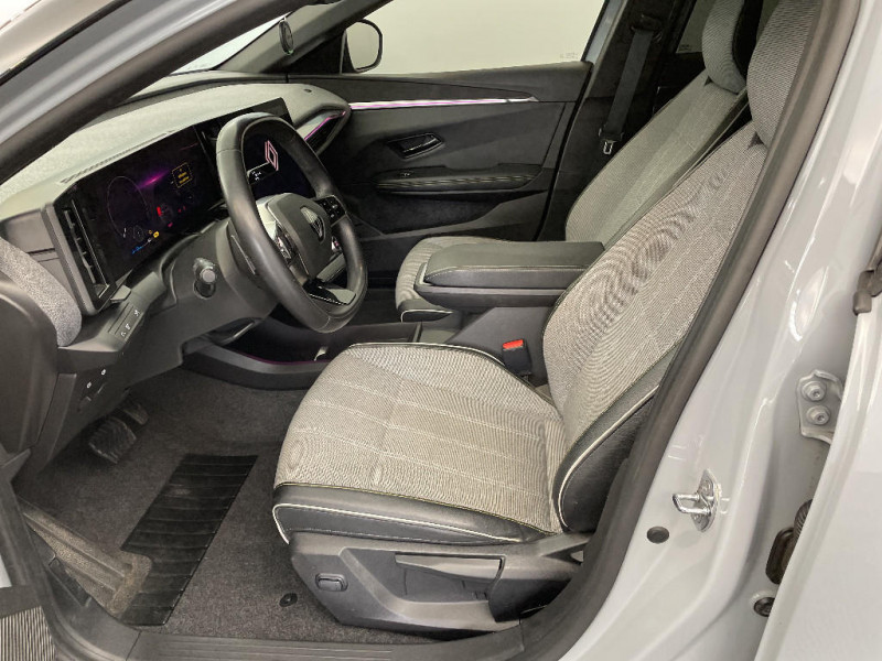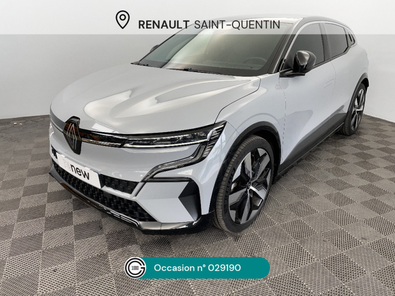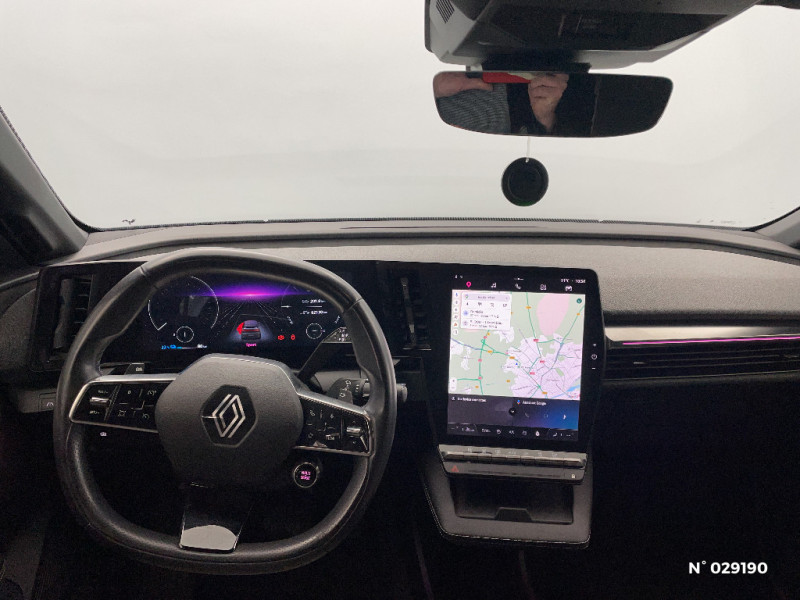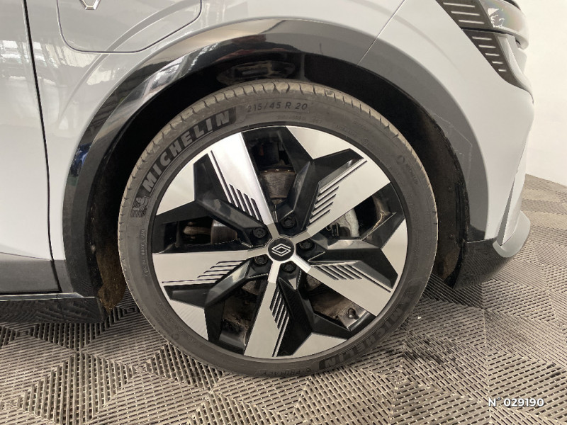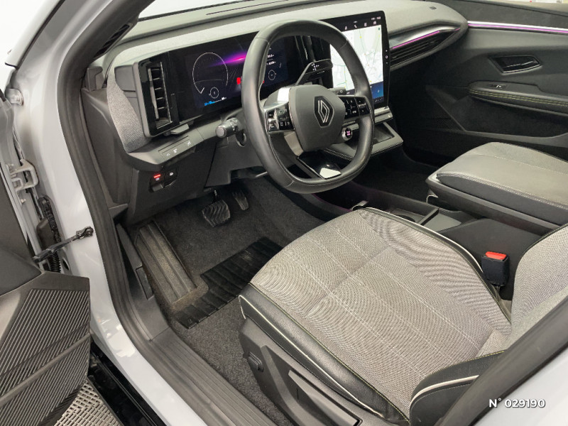 Détection de fatigue / Notice d?utilisation digitale embarqué dans le système multimédia du véhicule / Câble pour borne de recharge (mode 3 type 2 monophasé, 5m) / Freinage actif d'urgence urbain (piéton + cycliste + intersection) / Kit de gonflage / Sièges avec système ISOFIX / Câble de recharge pour Wallbox (mode 3 type 2, 5m) / Chargeur courant continu 130kW et courant alternatif 7kW (super) / Classe energetique A / Alerte d'oubli de ceinture de sécurité / Bandeau full LED AR avec effet 3D "moiré" / Réplication smartphone / Commutation automatique des feux de route/croisement / Rétroviseur jour/nuit automatique / Changement de mode de conduite via palettes au volant / Commutation automatique des feux et détecteur de pluie / Multi-sense / Peinture mono-ton / Bouclier AV Sport avec lame F1 ton caisse / Tableau de bord full numérique / 4 Ports USB (2 AV et 2 AR) / Carte Renault accès et démarrage mains libres / Console de rangement haute avec accoudoir / Purificateur d'air / Siège AV réglables 6 positions conducteur + lombaire / Volant chauffant / Ambiance interieure E3 / Antenne Requin / Bouclier AV sport avec lame F1 / Eclairage d'accueil portes AV / Jantes alliage diamantées 20" Soren / Poignées de portes affleurantes / Projecteurs full LED directionnels avec fonction antibrouillard / Sellerie mixte simili cuir / textile recyclé ELZA REC gris chiné / Signature lumineuse AV / Airbags latéraux, milieu AV et rideaux / Alerte de distance de sécurité / Alerte et assistant maintien de voie / Tapis couleur standard / Tissus velours / Système Multimédia openR link 12" : navigation, services Google, audio Arkamys Auditorium 6 HP