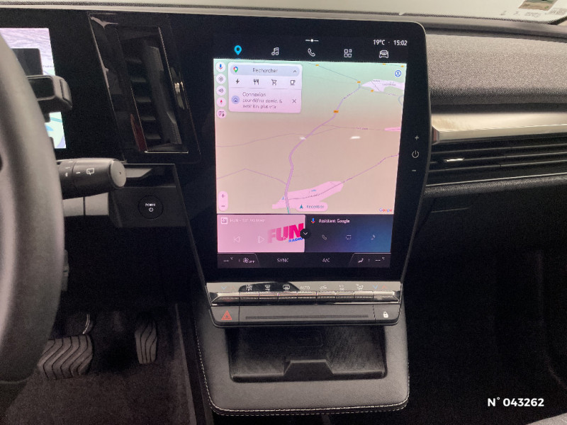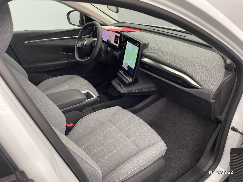 Sellerie textile recyclé EVA REC gris chiné / Système Multimédia openR link 12" : navigation, services Google, audio Arkamys Auditorium 6 HP / Airbags latéraux, milieu AV et rideaux / Alerte de distance de sécurité / Alerte et assistant maintien de voie / Alerte d'oubli de ceinture de sécurité / Détection de fatigue / Freinage actif d'urgence urbain (piéton + cycliste + intersection) / Kit de gonflage / Sièges avec système ISOFIX / Chargeur courant continu 130kW et courant alternatif 7kW (super) / Tableau de bord full numérique / 4 Ports USB (2 AV et 2 AR) / Carte Renault accès et démarrage mains libres / Console de rangement haute avec accoudoir / Purificateur d'air / Volant non chauffant / Ambiance interieure Noir / Bouclier AV sport avec lame F1 / Poignées de portes affleurantes / Projecteurs full LED directionnels avec fonction antibrouillard / Sièges avant réglables 6 positions conducteur + lombaire, 4 positions passager / Optimisation autonomie avec carrosserie spécifique / Notice d?utilisation digitale embarqué dans le système multimédia du véhicule / Enjoliveurs bi-ton 18" terdam / Câble pour borne de recharge (mode 3 type 2 monophasé, 5m) / Classe energetique 0 / Alerte et prévention sortie de voie (dont urgence) / Peinture opaque / Réplication smartphone / Commutation automatique des feux de route/croisement / Changement de mode de conduite via palettes au volant / Commutation automatique des feux et détecteur de pluie / Peinture mono-ton / Bouclier AV Sport avec lame F1 ton caisse / Rétroviseur manuel