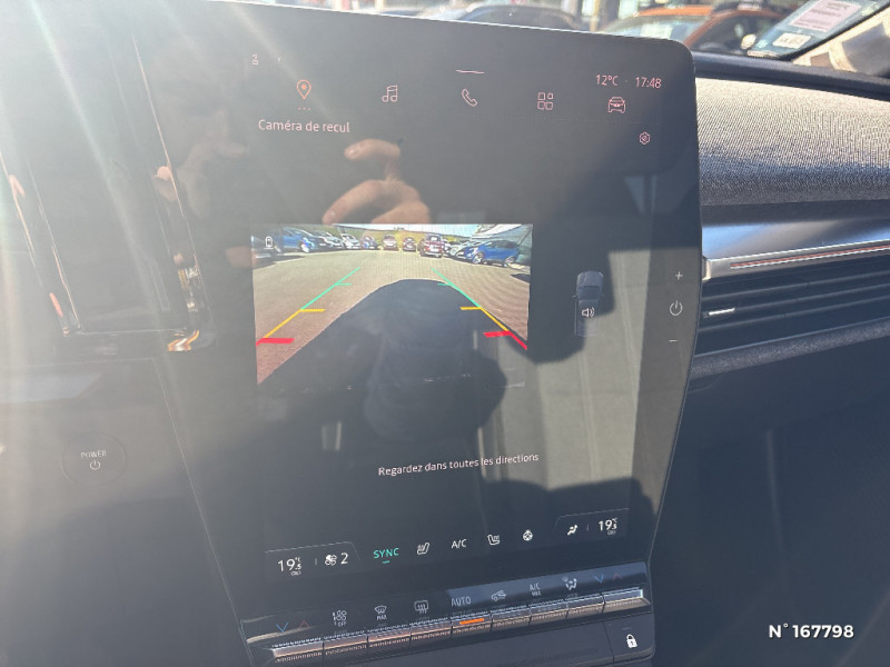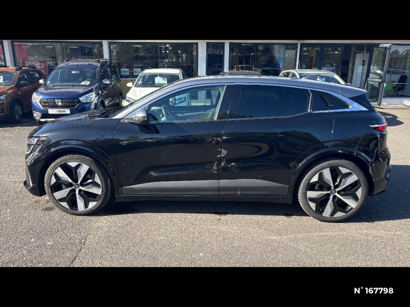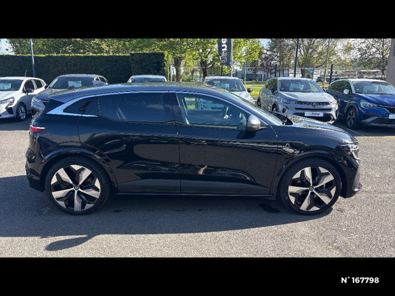 Multi-sense / Peinture mono-ton / Bouclier AV Sport avec lame F1 ton caisse / Tableau de bord full numérique / 4 Ports USB (2 AV et 2 AR) / Carte Renault accès et démarrage mains libres / Console de rangement haute avec accoudoir / Purificateur d'air / Siège AV réglables 6 positions conducteur + lombaire / Volant chauffant / Ambiance interieure E3 / Antenne Requin / Bouclier AV sport avec lame F1 / Eclairage d'accueil portes AV / Jantes alliage diamantées 20" Soren / Poignées de portes affleurantes / Projecteurs full LED directionnels avec fonction antibrouillard / Sellerie mixte simili cuir / textile recyclé ELZA REC gris chiné / Signature lumineuse AV / Tapis couleur standard / Système Multimédia openR link 12" : navigation, services Google, audio Arkamys Auditorium 6 HP / Airbags latéraux, milieu AV et rideaux / Alerte de distance de sécurité / Alerte et assistant maintien de voie / Alerte d'oubli de ceinture de sécurité / Bandeau full LED AR avec effet 3D "moiré" / Détection de fatigue / Freinage actif d'urgence urbain (piéton + cycliste + intersection) / Kit de gonflage / Sièges avec système ISOFIX / Câble de recharge pour Wallbox (mode 3 type 2, 5m) / Chargeur courant continu 130kW et courant alternatif 22kW (optimal) / Classe energetique A / Notice d?utilisation digitale embarqué dans le système multimédia du véhicule / Câble pour borne de recharge (mode 3 type 2 triphasé, 5m) / Tissus velours / Réplication smartphone / Commutation automatique des feux de route/croisement / Rétroviseur jour/nuit automatique / Changement de mode de conduite via palettes au volant / Commutation automatique des feux et détecteur de pluie