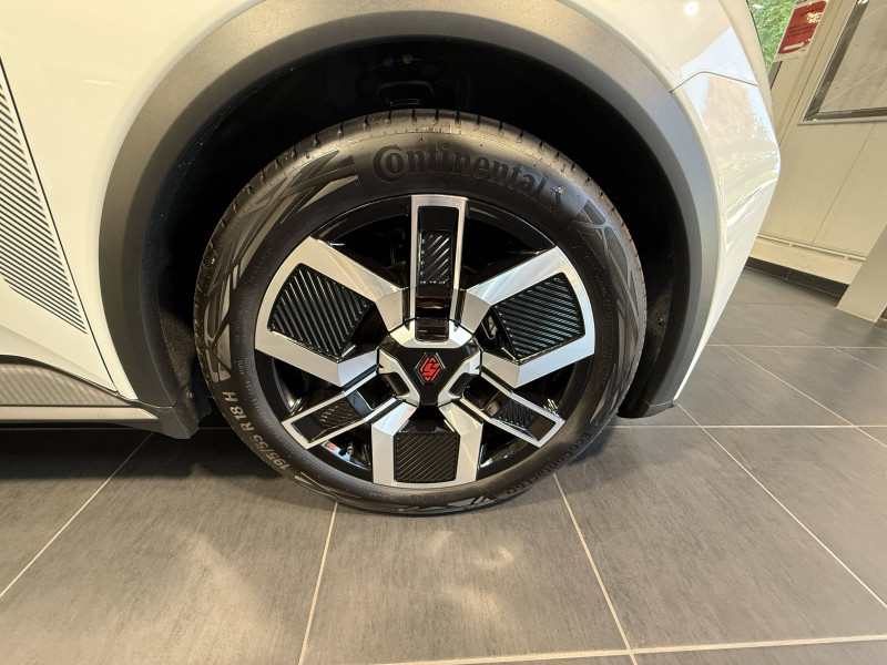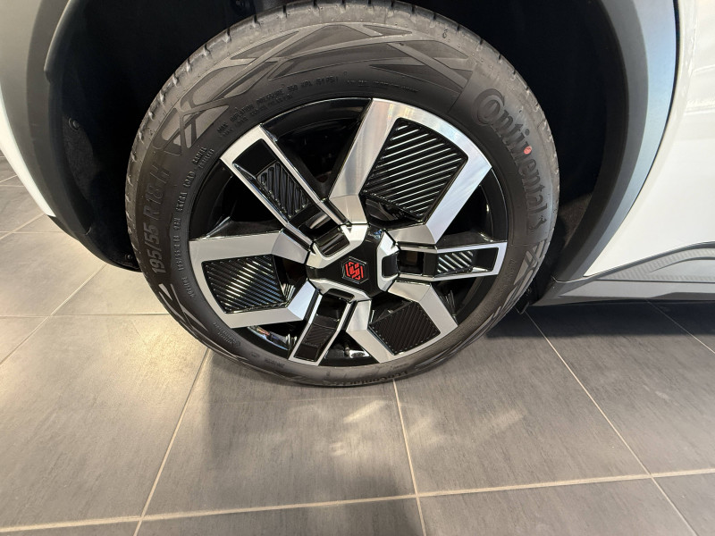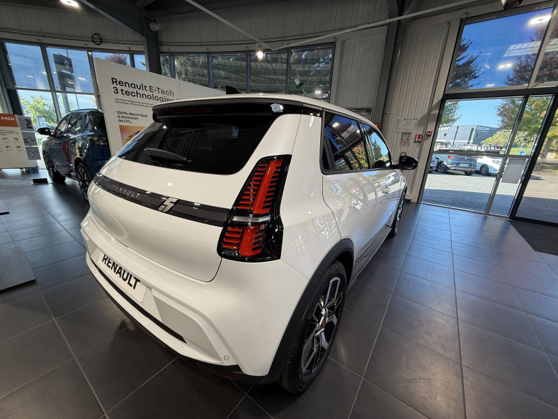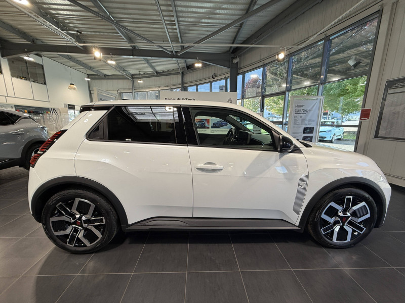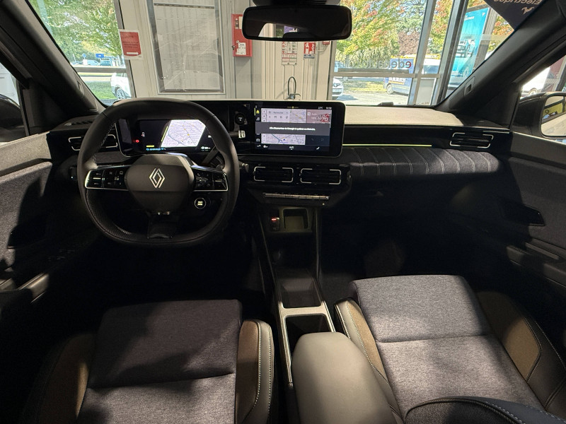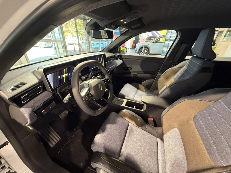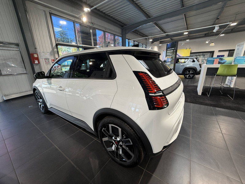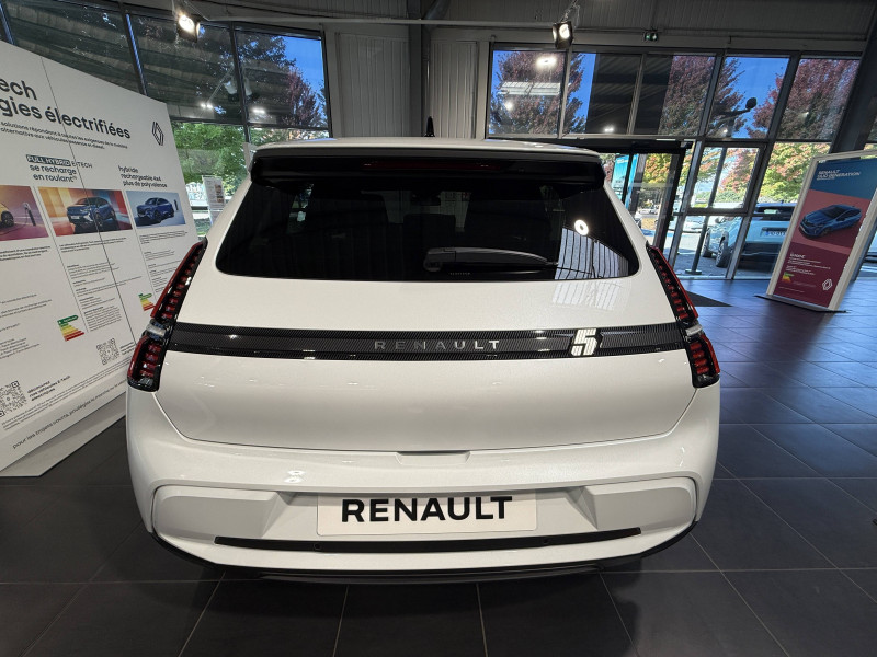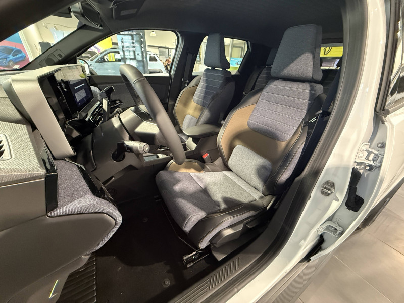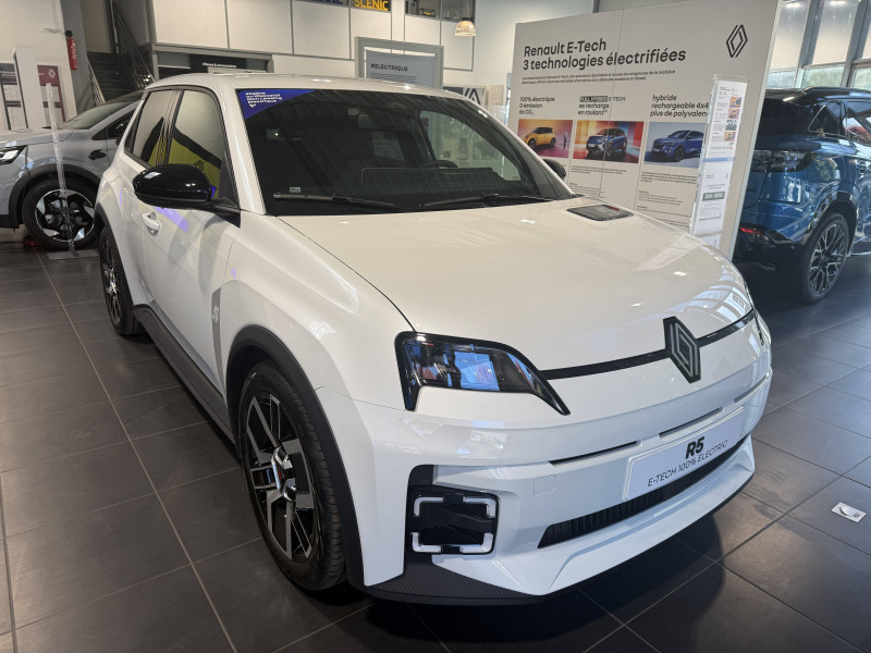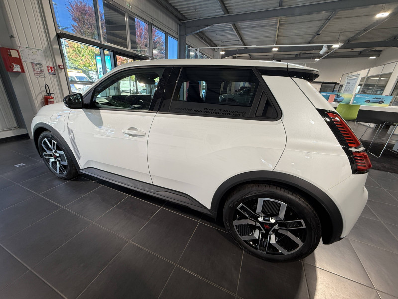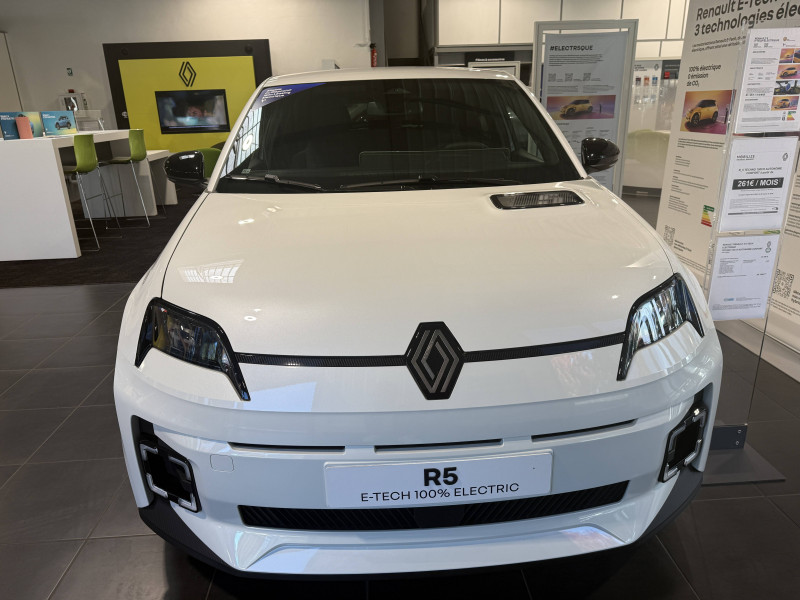 2 feux de recul / Alerte de perte de vigilance / Antenne requin / Avertisseur de distance de sécurité / Boîte de vitesse automatisée à variation continue / Câble pour borne de recharge (mode 3 type 2 triphasé, 11kW, 6.5m) / Charge AC 11 kW triphasé + DC 100 kW (pic) + compatible charge bidirectionnelle Vehicle-to-Grid / Commutation automatique des feux de route/croisement / Compatible charge bidirectionnelle power to object (Vehicle-to-Load ou V2L) / Console de rangement fixe avec accoudoir / Contrôle de la traction (TCS) / Déconnexion manuelle airbag passager / Décor de portes AV numbeR5 blanc techno / Détection intelligente des limitations de vitesse et prévention survitesse / Détection mains-libres à 360° (ouverture et verrouillage) / Eclairage d'ambiance 3 zones / Filtre à pollen / Freinage automatique d'urgence en ville pour deux roues et piétons / Freinage régénératif avec mode B / Frein de parking électrique avec fonction Auto-Hold / Garnitures et ciel de toit gris anthracite / Gestion automatique des feux et des essuie-glaces / Indicateur de recharge sur le capot / Jantes alliage diamantées bicolores 18'' techno / Jonc de toit noir / Maintenance connectée, incluse pendant 8 ans / Mise à jour système (via firmware over the air FOTA), inclus pendant 5 ans / Mode confort, sport, éco et personnalisé / Multi-sense : choix du mode de conduite / My Safety switch (raccourci vers configuration personnalisée des aides à la conduite) / Notice d'utilisation digitale embarqué dans le système multimédia du véhicule / Pack connected driving, inclus pendant 5 ans / Pack contrôle à distance (via l'application My Renault), inclus pendant 5 ans / Pompe à chaleur / Régulateur de vitesse adaptatif Stop & Go (freinage et ré-accélération automatique dans le trafic) / Reno, l'avatar officiel Renault / Réplication smartphone / Sellerie textile 100% recyclé "jean", double surpiqûre grise / ocre et textile refined noir / Siège passager AV + 2 sièges AR avec technologie isofix / Sièges AV manuels avec réglage 4 voies (prof/incl) + hauteur (siège conducteur uniquement) / Signature lumineuse à LED / Son d'alerte piétons / Système d'optimisation de la température batterie / Système multimédia openR link 10,1'' : navigation, Google intégré, précond. chargeDC, audio Arkamys Auditorium / Tableau de bord avec écran d'instrumentation 10'' / Témoin et alerte de non-bouclage de ceinture de sécurité / Volant textile enduit grainé