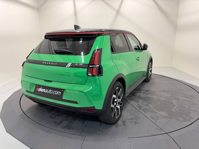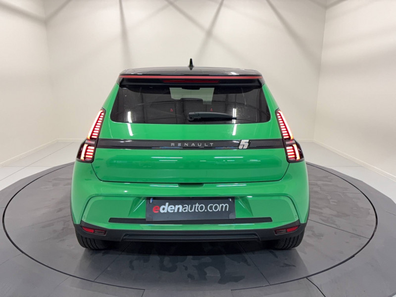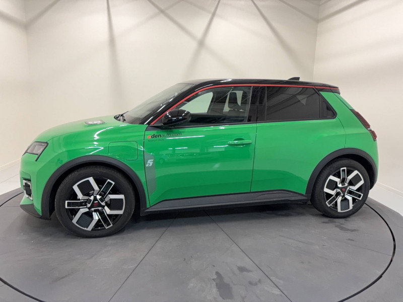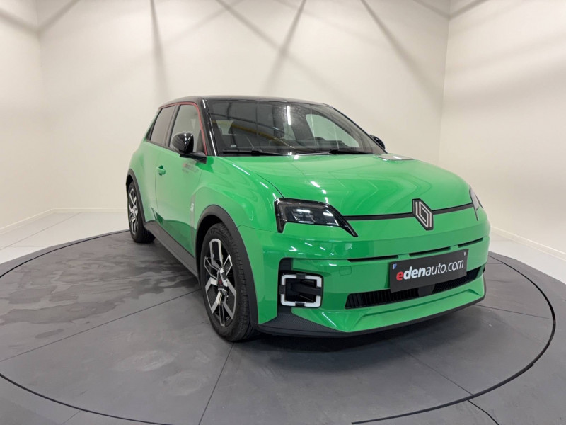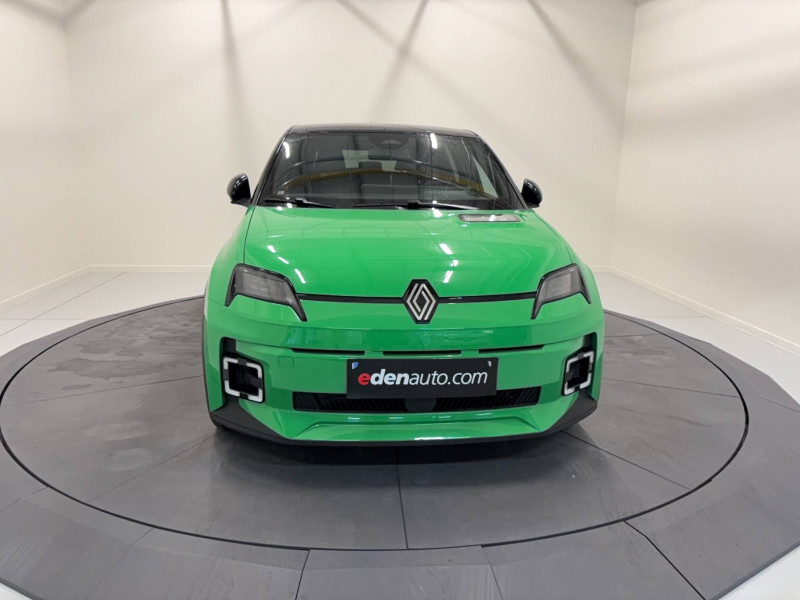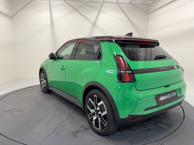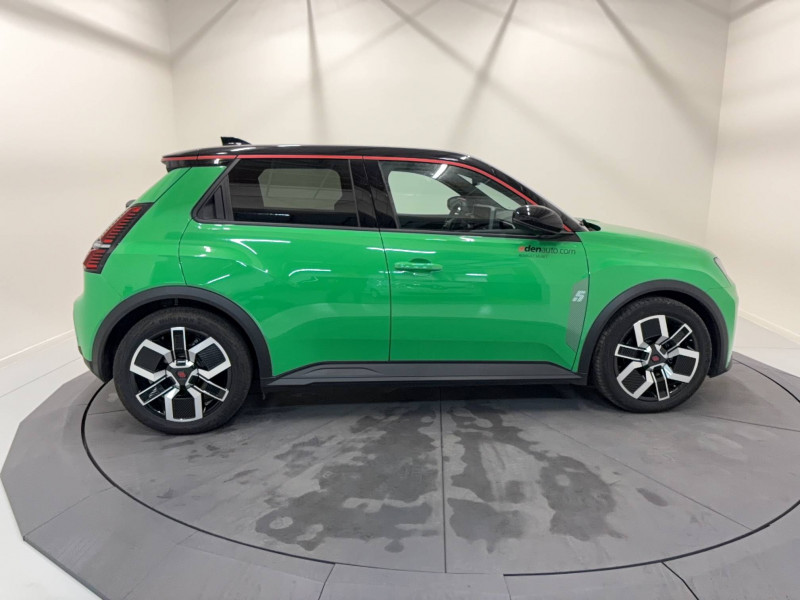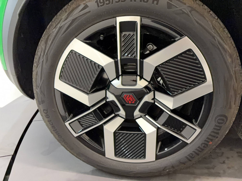 2 feux de recul / Alerte de perte de vigilance / Antenne requin / Avertisseur de distance de sécurité / Boîte de vitesse automatisée à variation continue / Câble pour borne de recharge (mode 3 type 2 triphasé, 11kW, 6.5m) / Charge AC 11 kW triphasé + DC 100 kW (pic) + compatible charge bidirectionnelle Vehicle-to-Grid / Commutation automatique des feux de route/croisement / Compatible charge bidirectionnelle power to object (Vehicle-to-Load ou V2L) / Console de rangement fixe avec accoudoir / Contrôle de la traction (TCS) / Déconnexion manuelle airbag passager / Décor de portes AV numbeR5 blanc techno / Détection intelligente des limitations de vitesse et prévention survitesse / Détection mains-libres à 360° (ouverture et verrouillage) / Eclairage d'ambiance 3 zones / Filtre à pollen / Freinage automatique d'urgence en ville pour deux roues et piétons / Freinage régénératif avec mode B / Frein de parking électrique avec fonction Auto-Hold / Garnitures et ciel de toit gris anthracite / Gestion automatique des feux et des essuie-glaces / Indicateur de recharge sur le capot / Jantes alliage diamantées bicolores 18'' techno / Jonc de toit noir / Maintenance connectée, incluse pendant 8 ans / Mise à jour système (via firmware over the air FOTA), inclus pendant 5 ans / Mode confort, sport, éco et personnalisé / Multi-sense : choix du mode de conduite / My Safety switch (raccourci vers configuration personnalisée des aides à la conduite) / Notice d'utilisation digitale embarqué dans le système multimédia du véhicule / Pack connected driving, inclus pendant 5 ans / Pack contrôle à distance (via l'application My Renault), inclus pendant 5 ans / Pompe à chaleur / Régulateur de vitesse adaptatif Stop & Go (freinage et ré-accélération automatique dans le trafic) / Reno, l'avatar officiel Renault / Réplication smartphone / Sellerie textile 100% recyclé "jean", double surpiqûre grise / ocre et textile refined noir / Siège passager AV + 2 sièges AR avec technologie isofix / Sièges AV manuels avec réglage 4 voies (prof/incl) + hauteur (siège conducteur uniquement) / Signature lumineuse à LED / Son d'alerte piétons / Système d'optimisation de la température batterie / Système multimédia openR link 10,1'' : navigation, Google intégré, précond. chargeDC, audio Arkamys Auditorium / Tableau de bord avec écran d'instrumentation 10'' / Témoin et alerte de non-bouclage de ceinture de sécurité / Volant textile enduit grainé