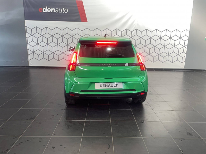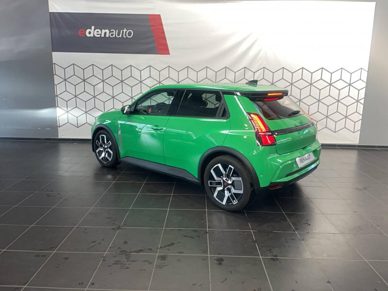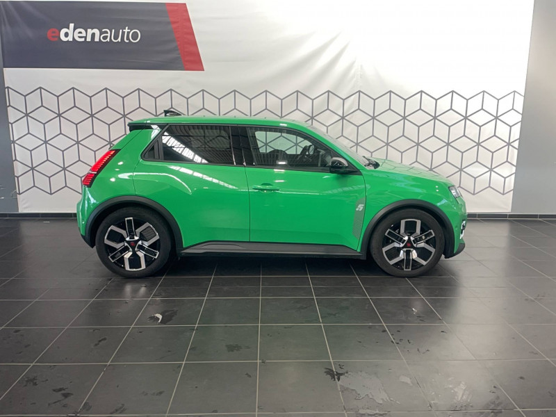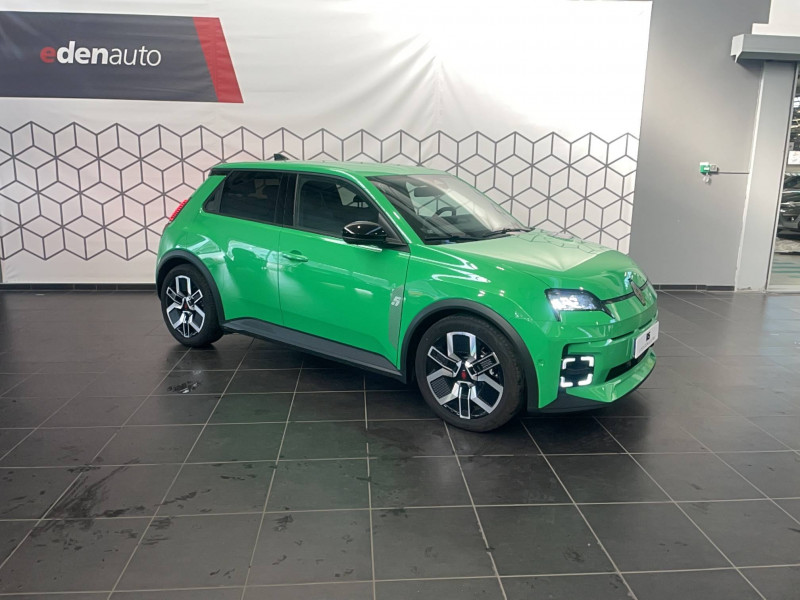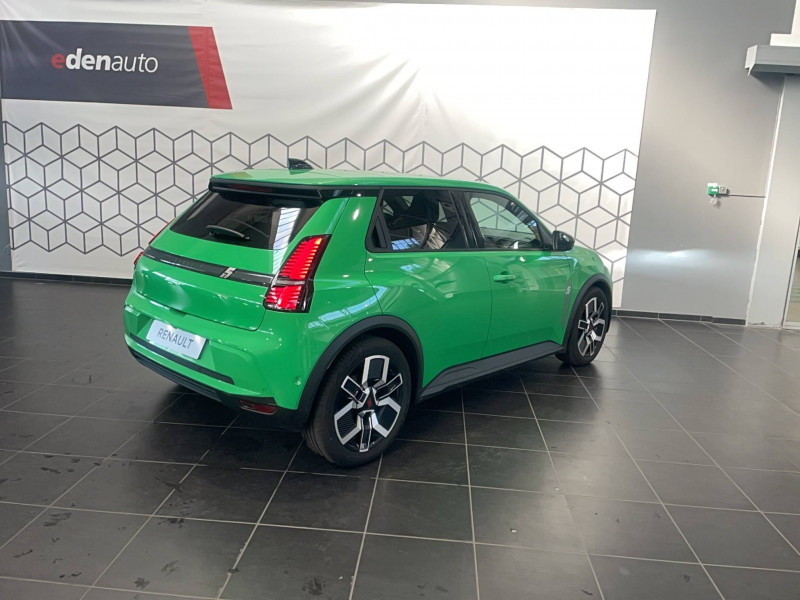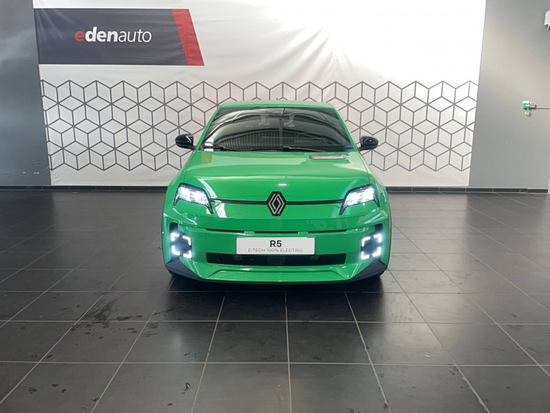 2 feux de recul / Alerte de perte de vigilance / Antenne requin / Avertisseur de distance de sécurité AV / Câble pour borne de recharge (mode 3 type 2 triphasé, 11kW, 6.5m) / Charge AC 11 kW triphasé + DC 100 kW (pic) + compatible charge bidirectionnelle Vehicle-to-Grid / Commutation automatique des feux de route/croisement / Compatible charge bidirectionnelle power to object (Vehicle-to-Load ou V2L) / Console de rangement fixe avec accoudoir / Déconnexion manuelle airbag passager / Décor de portes AV numbeR5 blanc techno / Détection intelligente des limitations de vitesse et prévention survitesse / Détection mains-libres à 360° (ouverture et verrouillage) / Eclairage d'ambiance 3 zones / Filtre à pollen / Freinage automatique d'urgence en ville pour deux roues et piétons / Freinage régénératif avec mode B / Frein de parking électrique avec fonction Auto-Hold / Garnitures et ciel de toit gris anthracite / Gestion automatique des feux et des essuie-glaces / Indicateur de recharge sur le capot / Jantes alliage diamantées bicolores 18'' techno / Jonc de toit noir / Mode confort, sport, éco et personnalisé / Multi-sense : choix du mode de conduite / My Safety switch (raccourci vers configuration personnalisée des aides à la conduite) / Pompe à chaleur / Régulateur de vitesse adaptatif Stop & Go (freinage et ré-accélération automatique dans le trafic) / Reno, l'avatar officiel Renault / Réplication smartphone / Rétroviseur intérieur avec mode jour/nuit automatique / Sellerie textile 100% recyclé "jean", double surpiqûre grise / ocre et textile refined noir / Siège passager AV + 2 sièges AR avec technologie isofix / Sièges AV manuels avec réglage 4 voies (prof/incl) + hauteur (siège conducteur uniquement) / Signature lumineuse à LED / Son d'alerte piétons / Système d'optimisation de la température batterie / Système multimédia openR link 10,1": Google intégré, préconditionnement charge DC, audio Arkamys / Tableau de bord avec écran d'instrumentation 10'' / Teinte mono-ton / Témoin et alerte de non-bouclage de ceinture de sécurité / Volant textile enduit grainé