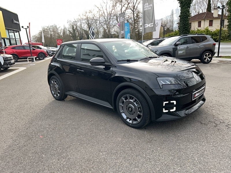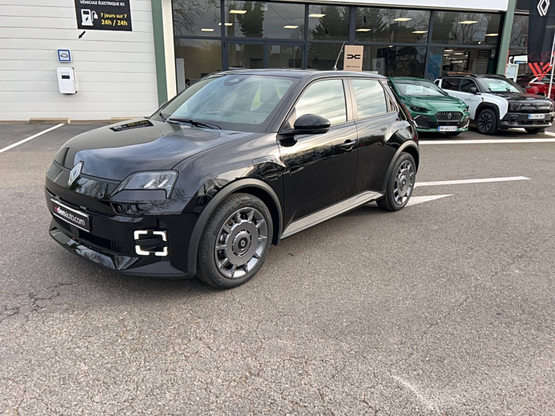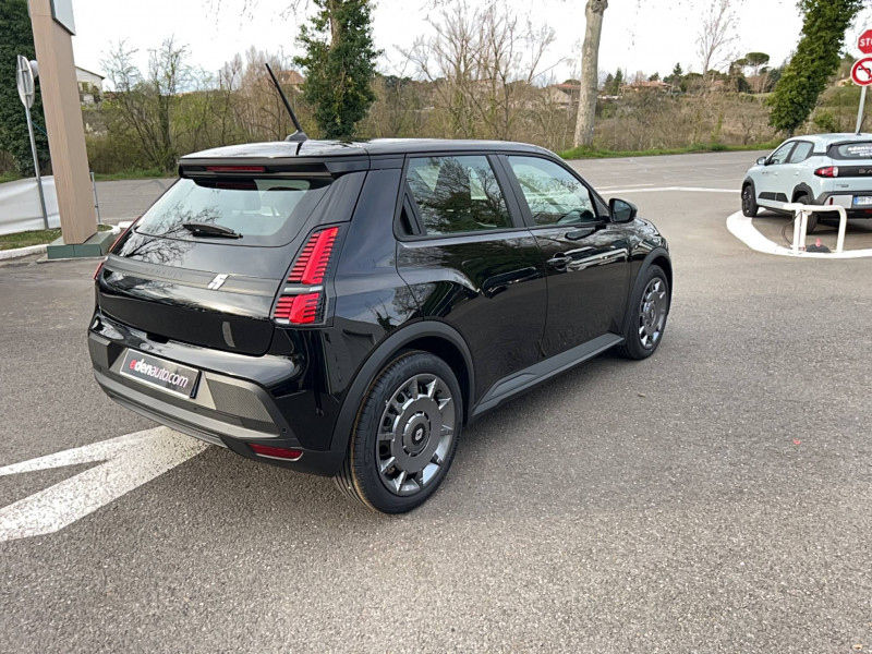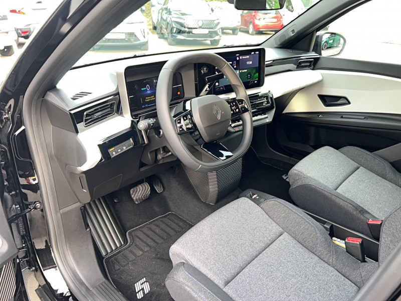 1 feu de recul / Antenne fouet / Avertisseur de distance de sécurité / Boîte de vitesse automatisée à variation continue / Câble pour borne de recharge (mode 3 type 2 triphasé, 11kW, 6.5m) / Charge AC 11 kW triphasé + DC 80 kW (pic) + compatible charge bidirectionnelle Vehicle-to-Grid / Charge rapide (DC) / Commutation automatique des feux de route/croisement / Compatible charge bidirectionnelle power to object (Vehicle-to-Load ou V2L) / Console centrale sans accoudoir / Contrôle de la traction (TCS) / Déconnexion manuelle airbag passager / Décor optionnel toit et portes AV (complémentaire stickers number5 ou Unlimited5) / Détection intelligente des limitations de vitesse et prévention survitesse / Détection mains-libres à 270° (ouverture et verrouillage) / Eclairage plafonnier / Filtre à pollen / Freinage automatique d'urgence en ville pour deux roues et piétons / Freinage régénératif avec mode B / Garnitures et ciel de toit gris anthracite / Gestion automatique des feux et des essuie-glaces / Instrumentation de bord 7" / Jantes acier avec enjoliveur 18" disco / Jonc de toit noir / Maintenance connectée, incluse pendant 8 ans / Mise à jour système (via firmware over the air FOTA), inclus pendant 5 ans / My Safety switch (raccourci vers configuration personnalisée des aides à la conduite) / Notice d'utilisation digitale embarqué dans le système multimédia du véhicule / Pack connected driving, inclus pendant 5 ans / Pack contrôle à distance (via l'application My Renault), inclus pendant 5 ans / Pompe à chaleur / Réplication smartphone / Rétroviseur intérieur avec mode jour/nuit manuel / Sellerie textile gris et noir avec surpiqûres claires / Siège passager AV + 2 sièges AR avec technologie isofix / Sièges AV réglables en profondeur et inclinaison / Signature lumineuse à LED / Son d'alerte piétons / Système multimédia openR 10,1": radio, DAB, 4 haut-parleurs / Tableau de bord avec écran d'instrumentation / Témoin et alerte de non-bouclage de ceinture de sécurité