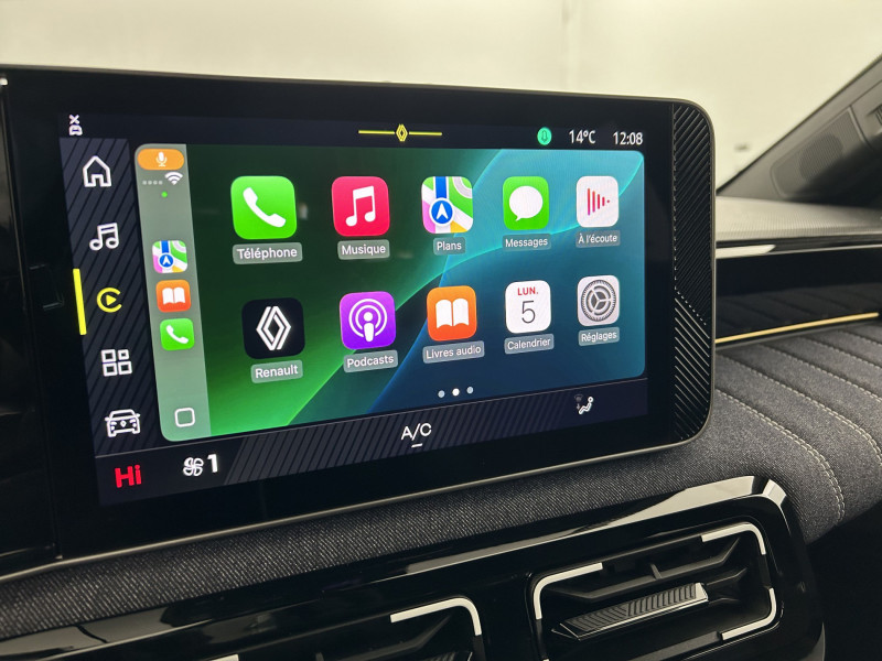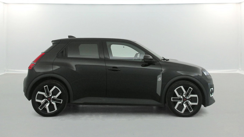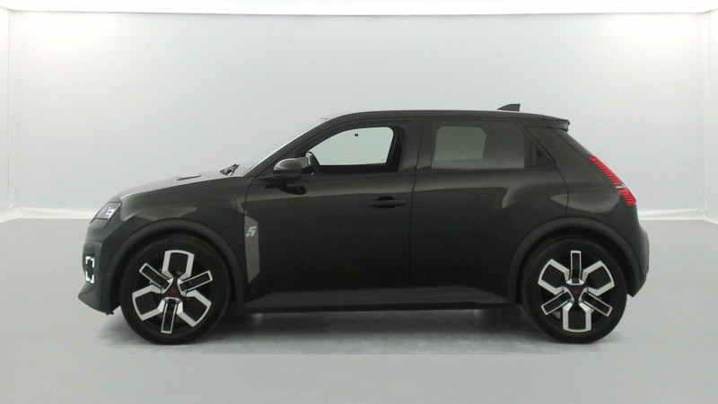 2 feux de recul / Alerte de perte de vigilance / Antenne requin / Avertisseur de distance de sécurité / Boîte de vitesse automatisée à variation continue / Câble pour borne de recharge (mode 3 type 2 triphasé, 11kW, 6.5m) / Charge AC 11 kW triphasé + DC 100 kW (pic) + compatible charge bidirectionnelle Vehicle-to-Grid / Commutation automatique des feux de route/croisement / Compatible charge bidirectionnelle power to object (Vehicle-to-Load ou V2L) / Console de rangement fixe avec accoudoir / Contrôle de la traction (TCS) / Déconnexion manuelle airbag passager / Décor de portes AV numbeR5 blanc techno / Détection intelligente des limitations de vitesse et prévention survitesse / Détection mains-libres à 360° (ouverture et verrouillage) / Eclairage d'ambiance 3 zones / Filtre à pollen / Freinage automatique d'urgence en ville pour deux roues et piétons / Freinage régénératif avec mode B / Frein de parking électrique avec fonction Auto-Hold / Garnitures et ciel de toit gris anthracite / Gestion automatique des feux et des essuie-glaces / Indicateur de recharge sur le capot / Jantes alliage diamantées bicolores 18'' techno / Jonc de toit noir / Maintenance connectée, incluse pendant 8 ans / Mise à jour système (via firmware over the air FOTA), inclus pendant 5 ans / Mode confort, sport, éco et personnalisé / Multi-sense : choix du mode de conduite / My Safety switch (raccourci vers configuration personnalisée des aides à la conduite) / Notice d'utilisation digitale embarqué dans le système multimédia du véhicule / Pack connected driving, inclus pendant 5 ans / Pack contrôle à distance (via l'application My Renault), inclus pendant 5 ans / Pompe à chaleur / Régulateur de vitesse adaptatif Stop & Go (freinage et ré-accélération automatique dans le trafic) / Reno, l'avatar officiel Renault / Réplication smartphone / Sellerie textile 100% recyclé "jean", double surpiqûre grise / ocre et textile refined noir / Siège passager AV + 2 sièges AR avec technologie isofix / Sièges AV manuels avec réglage 4 voies (prof/incl) + hauteur (siège conducteur uniquement) / Signature lumineuse à LED / Son d'alerte piétons / Système d'optimisation de la température batterie / Système multimédia openR link 10,1'' : navigation, Google intégré, précond. chargeDC, audio Arkamys Auditorium / Tableau de bord avec écran d'instrumentation 10'' / Témoin et alerte de non-bouclage de ceinture de sécurité / Volant textile enduit grainé /