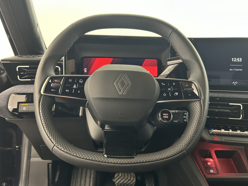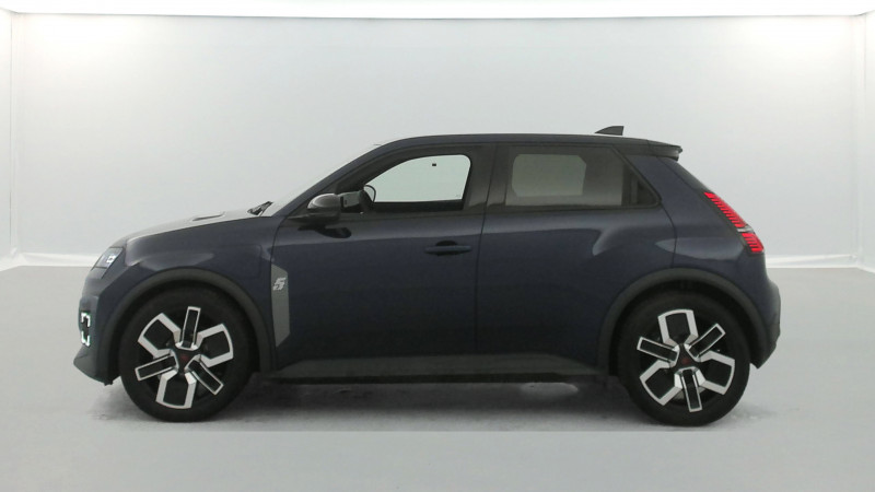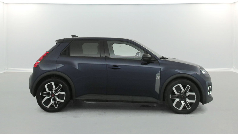 2 feux de recul / Alerte de perte de vigilance / Antenne requin / Avertisseur de distance de sécurité / Boîte de vitesse automatisée à variation continue / Câble pour borne de recharge (mode 3 type 2 triphasé, 11kW, 6.5m) / Charge AC 11 kW triphasé + DC 100 kW (pic) + compatible charge bidirectionnelle Vehicle-to-Grid / Commutation automatique des feux de route/croisement / Compatible charge bidirectionnelle power to object (Vehicle-to-Load ou V2L) / Console de rangement fixe avec accoudoir / Contrôle de la traction (TCS) / Déconnexion manuelle airbag passager / Décor de portes AV numbeR5 blanc techno / Détection intelligente des limitations de vitesse et prévention survitesse / Détection mains-libres à 360° (ouverture et verrouillage) / Eclairage d'ambiance 3 zones / Filtre à pollen / Freinage automatique d'urgence en ville pour deux roues et piétons / Freinage régénératif avec mode B / Frein de parking électrique avec fonction Auto-Hold / Garnitures et ciel de toit gris anthracite / Gestion automatique des feux et des essuie-glaces / Indicateur de recharge sur le capot / Jantes alliage diamantées bicolores 18'' techno / Jonc de toit noir / Maintenance connectée, incluse pendant 8 ans / Mise à jour système (via firmware over the air FOTA), inclus pendant 5 ans / Mode confort, sport, éco et personnalisé / Multi-sense : choix du mode de conduite / My Safety switch (raccourci vers configuration personnalisée des aides à la conduite) / Notice d'utilisation digitale embarqué dans le système multimédia du véhicule / Pack connected driving, inclus pendant 5 ans / Pack contrôle à distance (via l'application My Renault), inclus pendant 5 ans / Pompe à chaleur / Régulateur de vitesse adaptatif Stop & Go (freinage et ré-accélération automatique dans le trafic) / Reno, l'avatar officiel Renault / Réplication smartphone / Sellerie textile 100% recyclé "jean", double surpiqûre grise / ocre et textile refined noir / Siège passager AV + 2 sièges AR avec technologie isofix / Sièges AV manuels avec réglage 4 voies (prof/incl) + hauteur (siège conducteur uniquement) / Signature lumineuse à LED / Son d'alerte piétons / Système d'optimisation de la température batterie / Système multimédia openR link 10,1'' : navigation, Google intégré, précond. chargeDC, audio Arkamys Auditorium / Tableau de bord avec écran d'instrumentation 10'' / Témoin et alerte de non-bouclage de ceinture de sécurité / Volant textile enduit grainé /