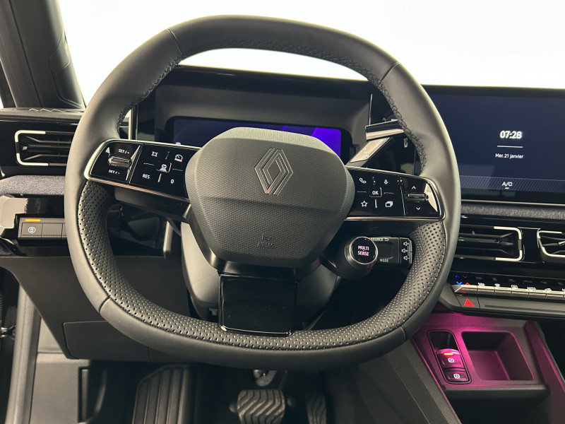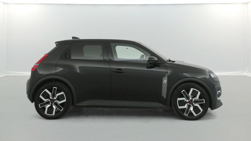 2 feux de recul / Alerte de perte de vigilance / Antenne requin / Avertisseur de distance de sécurité / Boîte de vitesse automatisée à variation continue / Câble pour borne de recharge (mode 3 type 2 triphasé, 11kW, 6.5m) / Charge AC 11 kW triphasé + DC 100 kW (pic) + compatible charge bidirectionnelle Vehicle-to-Grid / Commutation automatique des feux de route/croisement / Compatible charge bidirectionnelle power to object (Vehicle-to-Load ou V2L) / Console de rangement fixe avec accoudoir / Contrôle de la traction (TCS) / Déconnexion manuelle airbag passager / Décor de portes AV numbeR5 blanc techno / Détection intelligente des limitations de vitesse et prévention survitesse / Détection mains-libres à 360° (ouverture et verrouillage) / Eclairage d'ambiance 3 zones / Filtre à pollen / Freinage automatique d'urgence en ville pour deux roues et piétons / Freinage régénératif avec mode B / Frein de parking électrique avec fonction Auto-Hold / Garnitures et ciel de toit gris anthracite / Gestion automatique des feux et des essuie-glaces / Indicateur de recharge sur le capot / Jantes alliage diamantées bicolores 18'' techno / Jonc de toit noir / Maintenance connectée, incluse pendant 8 ans / Mise à jour système (via firmware over the air FOTA), inclus pendant 5 ans / Mode confort, sport, éco et personnalisé / Multi-sense : choix du mode de conduite / My Safety switch (raccourci vers configuration personnalisée des aides à la conduite) / Notice d'utilisation digitale embarqué dans le système multimédia du véhicule / Pack connected driving, inclus pendant 5 ans / Pack contrôle à distance (via l'application My Renault), inclus pendant 5 ans / Pompe à chaleur / Régulateur de vitesse adaptatif Stop & Go (freinage et ré-accélération automatique dans le trafic) / Reno, l'avatar officiel Renault / Réplication smartphone / Sellerie textile 100% recyclé "jean", double surpiqûre grise / ocre et textile refined noir / Siège passager AV + 2 sièges AR avec technologie isofix / Sièges AV manuels avec réglage 4 voies (prof/incl) + hauteur (siège conducteur uniquement) / Signature lumineuse à LED / Son d'alerte piétons / Système d'optimisation de la température batterie / Système multimédia openR link 10,1'' : navigation, Google intégré, précond. chargeDC, audio Arkamys Auditorium / Tableau de bord avec écran d'instrumentation 10'' / Témoin et alerte de non-bouclage de ceinture de sécurité / Volant textile enduit grainé /