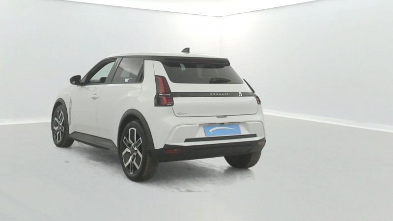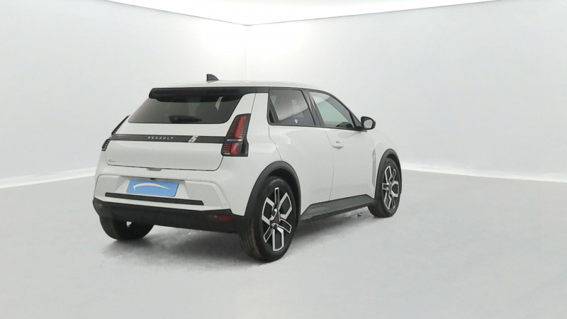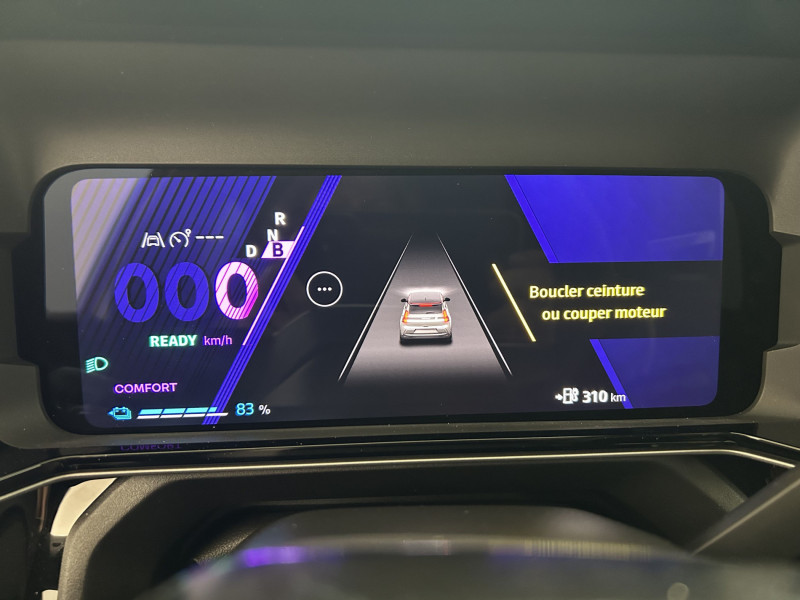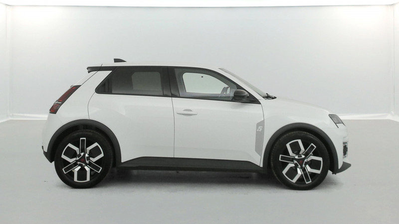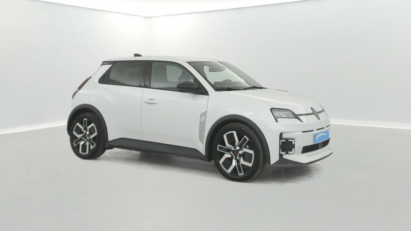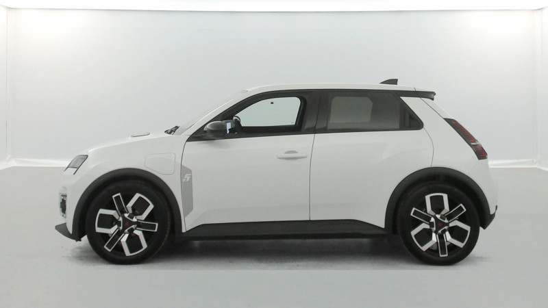 2 feux de recul / Alerte de perte de vigilance / Antenne requin / Avertisseur de distance de sécurité / Boîte de vitesse automatisée à variation continue / Câble pour borne de recharge (mode 3 type 2 triphasé, 11kW, 6.5m) / Charge AC 11 kW triphasé + DC 100 kW (pic) + compatible charge bidirectionnelle Vehicle-to-Grid / Commutation automatique des feux de route/croisement / Compatible charge bidirectionnelle power to object (Vehicle-to-Load ou V2L) / Console de rangement fixe avec accoudoir / Contrôle de la traction (TCS) / Déconnexion manuelle airbag passager / Décor de portes AV numbeR5 blanc techno / Détection intelligente des limitations de vitesse et prévention survitesse / Détection mains-libres à 360° (ouverture et verrouillage) / Eclairage d'ambiance 3 zones / Filtre à pollen / Freinage automatique d'urgence en ville pour deux roues et piétons / Freinage régénératif avec mode B / Frein de parking électrique avec fonction Auto-Hold / Garnitures et ciel de toit gris anthracite / Gestion automatique des feux et des essuie-glaces / Indicateur de recharge sur le capot / Jantes alliage diamantées bicolores 18'' techno / Jonc de toit noir / Mode confort, sport, éco et personnalisé / Multi-sense : choix du mode de conduite / My Safety switch (raccourci vers configuration personnalisée des aides à la conduite) / Pompe à chaleur / Régulateur de vitesse adaptatif Stop & Go (freinage et ré-accélération automatique dans le trafic) / Reno, l'avatar officiel Renault / Réplication smartphone / Rétroviseur intérieur avec mode jour/nuit automatique / Sellerie textile 100% recyclé "jean", double surpiqûre grise / ocre et textile refined noir / Siège passager AV + 2 sièges AR avec technologie isofix / Sièges AV manuels avec réglage 4 voies (prof/incl) + hauteur (siège conducteur uniquement) / Signature lumineuse à LED / Son d'alerte piétons / Système d'optimisation de la température batterie / Système multimédia openR link 10,1": Google intégré, préconditionnement charge DC, audio Arkamys / Tableau de bord avec écran d'instrumentation 10'' / Témoin et alerte de non-bouclage de ceinture de sécurité / Volant textile enduit grainé /