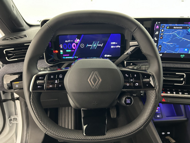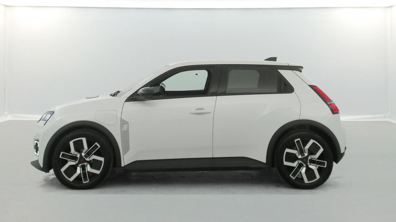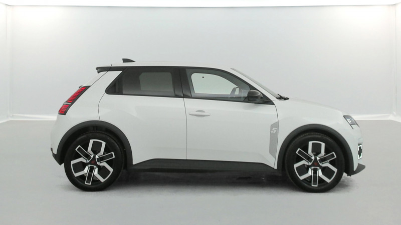 2 feux de recul / Alerte de perte de vigilance / Antenne requin / Avertisseur de distance de sécurité / Boîte de vitesse automatisée à variation continue / Câble pour borne de recharge (mode 3 type 2 triphasé, 11kW, 6.5m) / Charge AC 11 kW triphasé + DC 100 kW (pic) + compatible charge bidirectionnelle Vehicle-to-Grid / Commutation automatique des feux de route/croisement / Compatible charge bidirectionnelle power to object (Vehicle-to-Load ou V2L) / Console de rangement fixe avec accoudoir / Contrôle de la traction (TCS) / Déconnexion manuelle airbag passager / Décor de portes AV numbeR5 blanc techno / Détection intelligente des limitations de vitesse et prévention survitesse / Détection mains-libres à 360° (ouverture et verrouillage) / Eclairage d'ambiance 3 zones / Filtre à pollen / Freinage automatique d'urgence en ville pour deux roues et piétons / Freinage régénératif avec mode B / Frein de parking électrique avec fonction Auto-Hold / Garnitures et ciel de toit gris anthracite / Gestion automatique des feux et des essuie-glaces / Indicateur de recharge sur le capot / Jantes alliage diamantées bicolores 18'' techno / Jonc de toit noir / Maintenance connectée, incluse pendant 8 ans / Mise à jour système (via firmware over the air FOTA), inclus pendant 5 ans / Mode confort, sport, éco et personnalisé / Multi-sense : choix du mode de conduite / My Safety switch (raccourci vers configuration personnalisée des aides à la conduite) / Notice d'utilisation digitale embarqué dans le système multimédia du véhicule / Pack connected driving, inclus pendant 5 ans / Pack contrôle à distance (via l'application My Renault), inclus pendant 5 ans / Pompe à chaleur / Régulateur de vitesse adaptatif Stop & Go (freinage et ré-accélération automatique dans le trafic) / Reno, l'avatar officiel Renault / Réplication smartphone / Sellerie textile 100% recyclé "jean", double surpiqûre grise / ocre et textile refined noir / Siège passager AV + 2 sièges AR avec technologie isofix / Sièges AV manuels avec réglage 4 voies (prof/incl) + hauteur (siège conducteur uniquement) / Signature lumineuse à LED / Son d'alerte piétons / Système d'optimisation de la température batterie / Système multimédia openR link 10,1'' : navigation, Google intégré, précond. chargeDC, audio Arkamys Auditorium / Tableau de bord avec écran d'instrumentation 10'' / Témoin et alerte de non-bouclage de ceinture de sécurité / Volant textile enduit grainé /