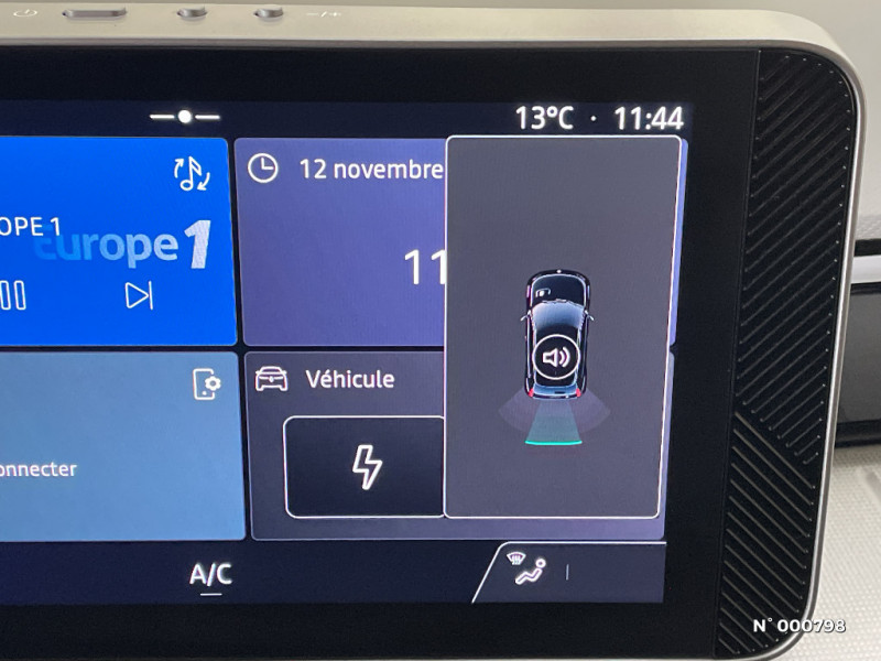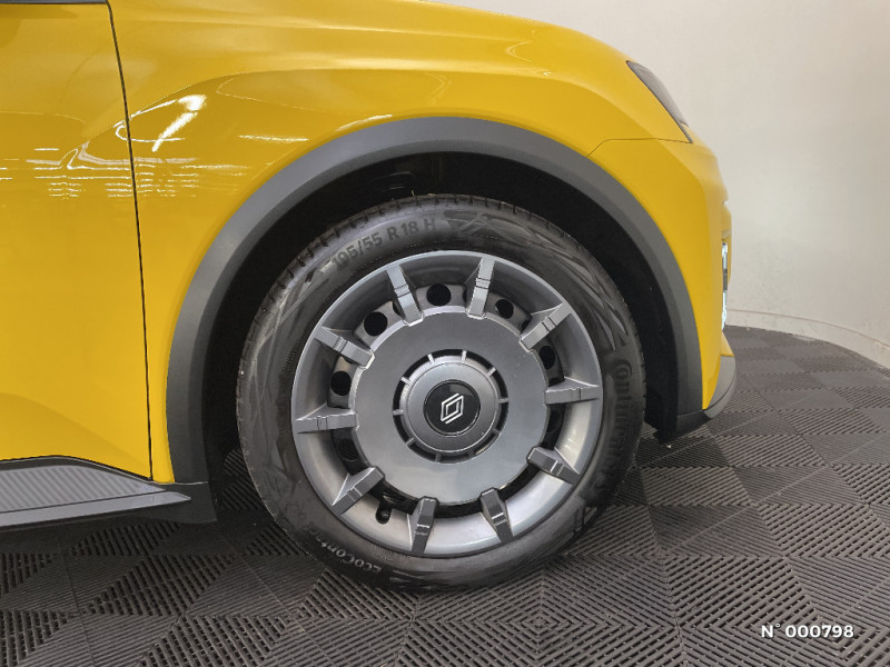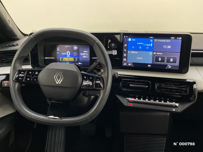 Commutation automatique des feux de route/croisement / Freinage régénératif avec mode B / Jantes acier avec enjoliveur 18" disco / Sellerie textile gris et noir avec surpiqures claires / Tableau de bord avec écran d'instrumentation / Détection mains-libres à 270° (ouverture et verrouillage) / Eclairage plafonnier / Système multimédia openR 10,1": radio, DAB, 4 haut-parleurs / Sièges AV réglables en hauteur et inclinaison / Rétroviseurs extérieurs à commande électrique, dégivrants et rabattables manuellement / Charge AC 11 kW triphasé + DC 80 kW (pic) + compatible charge bidirectionnelle Vehicle-to-Grid / Console centrale sans accoudoir / 1 feu de recul / Antenne fouet / Instrumentation de bord 7" / Boîte de vitesse automatisée à variation continue / Contrôle de la traction (TCS) / Pack contrôle à distance (via l?application My Renault), inclus pendant 5 ans / Mise à jour système (via firmware over the air FOTA), inclus pendant 5 ans / Maintenance connectée, incluse pendant 8 ans / Pack connected driving, inclus pendant 5 ans / Signature lumineuse à LED / Jonc de toit noir / Teinte mono-ton / Alerte de perte de vigilance / Déconnexion manuelle airbag passager / Témoin et alerte de non-bouclage de ceinture de sécurité / Pompe à chaleur / Notice d?utilisation digitale embarqué dans le système multimédia du véhicule / Réplication smartphone / Avertisseur de distance de sécurité AV / Freinage automatique d'urgence en ville pour deux roues et piétons / Détection intelligente des limitations de vitesse et prévention survitesse / My Safety switch (raccourci vers configuration personnalisée des aides à la conduite) / Garnitures et ciel de toit gris anthracite / Câble pour borne de recharge (mode 3 type 2 triphasé, 11kW, 6.5m) / Compatible charge bidirectionnelle power to object (Vehicle-to-Load ou V2L) / Son d'alerte piétons / Système d'optimisation de la température batterie / Console de rangement fixe avec accoudoir / Gestion automatique des feux et des essuie-glaces / Filtre à pollen / Siège passager AV + 2 sièges AR avec technologie isofix / Rétroviseur intérieur avec mode jour/nuit manuel