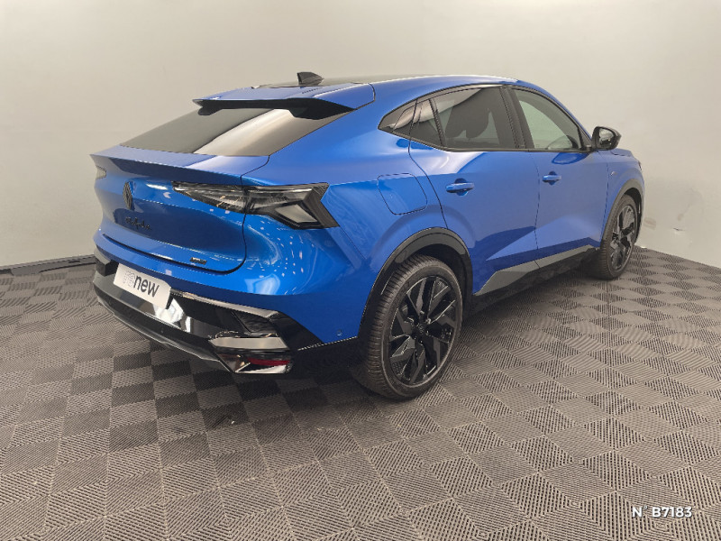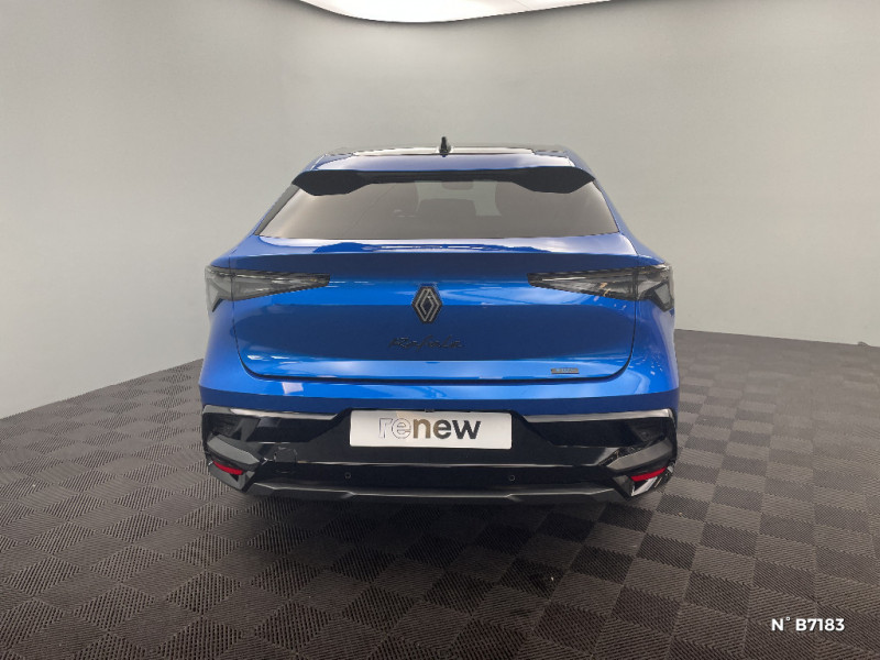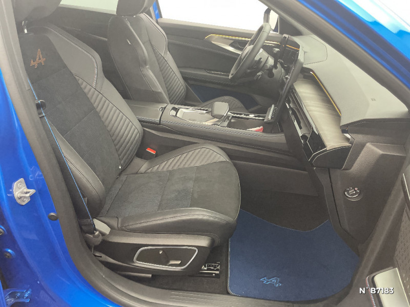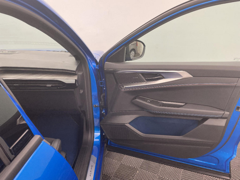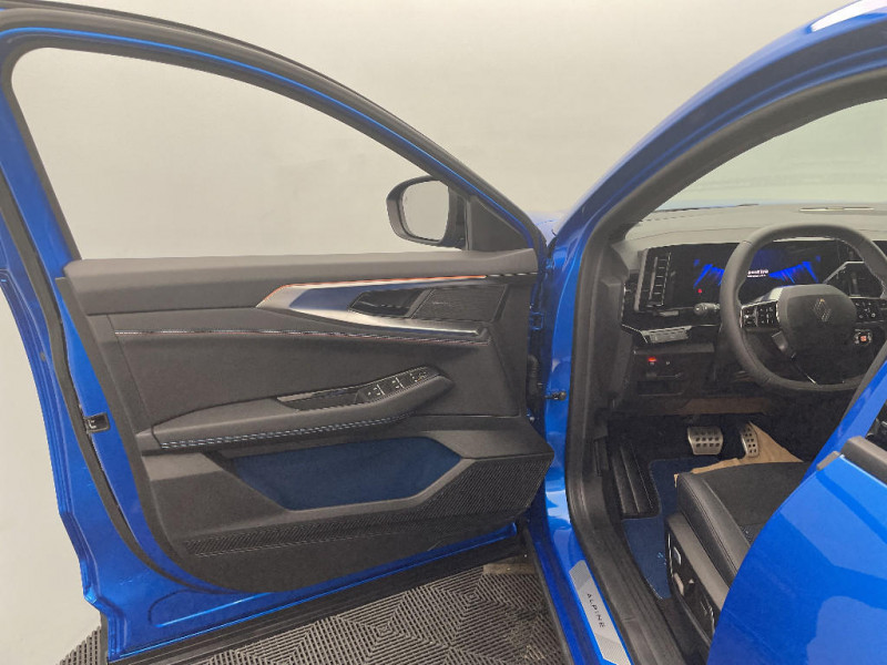 Pack connected driving, inclus pendant 5 ans / Pack contrôle à distance (via l'application My Renault), inclus pendant 5 ans / Pack Design esprit Alpine extérieur / Pack Design esprit Alpine intérieur / Plaque de protection de coffre en aluminium / Pré-équipement alarme / Rétroviseur intérieur électrochrome sans cadre / Sellerie mixte Alcantara avec surpiqûres bleues et logo Alpine lumineux / Sièges avec système ISOFIX / Système Multimédia openR link 12" : navigation & services Google intégrés, audio Arkamys Auditorium / Tableau de bord full numérique 12,3'' / 4Control advanced / Notice d'utilisation digitale embarqué dans le système multimédia du véhicule / Avertisseur d'angle mort et prévention sortie de voie en cas de dépassement / Avertisseur de sortie de stationnement en marche AR avec freinage d'urgence automatique / Boîte de vitesse automatique 4 rapports / Carte Renault accès et démarrage mains libres / Ciel de toit gris anthracite / Clignotants AR dynamiques / Commutation automatique des feux de route/croisement / Console centrale avec repose main coulissant / Console de toit avec porte-lunettes / Feux AV adaptive LED vision / Hayon motorisé / Jantes alliage 20'' castellet noires diamantées / Kit de gonflage / Lumière d'ambiance personnalisable / Maintenance connectée, incluse pendant 8 ans / Miroir de surveillance enfants / Mise à jour système (via firmware over the air FOTA), inclus pendant 5 ans / Multi-sense / Contrôle de la traction (TCS) / Navigation Google Maps / Aide au parking AV/AR et latéral / Airbags latéraux, rideaux et central AV / Alerte de distance de sécurité / Alerte franchissement de ligne et assistant maintien dans la voie / Alerte sortie sécurisée des occupants