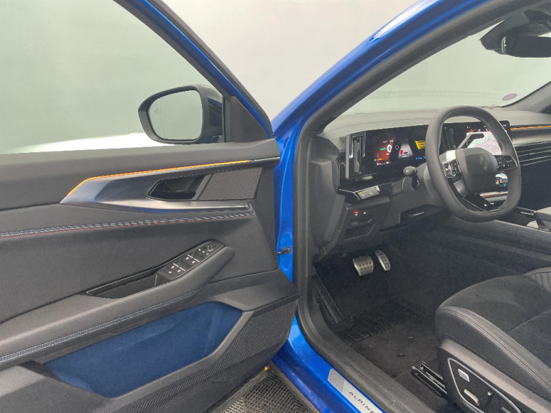 Système Multimédia openR link 12" : navigation & services Google intégrés, audio Arkamys Auditorium / Plaque de protection de coffre en aluminium / Commutation automatique des feux de route/croisement / Multi-sense / Carte Renault accès et démarrage mains libres / Alerte de distance de sécurité / Kit de gonflage / Sièges avec système ISOFIX / Avertisseur d'angle mort et prévention sortie de voie en cas de dépassement / Notice d'utilisation digitale embarqué dans le système multimédia du véhicule / 4Control advanced / Appuie-têtes AV grand confort / Console centrale avec repose main coulissant / Miroir de surveillance enfants / Lumière d'ambiance personnalisable / Rétroviseur intérieur électrochrome sans cadre / Feux AV adaptive LED vision / Jantes alliage 20'' castellet noires diamantées / 2 prises USB à l'AV et à l'AR / Ciel de toit gris anthracite / Clignotants AR dynamiques / Pack Design esprit Alpine extérieur / Pack Design esprit Alpine intérieur / Navigation Google Maps / Tableau de bord full numérique 12,3'' / Alerte franchissement de ligne et assistant maintien dans la voie / Avertisseur de sortie de stationnement en marche AR avec freinage d'urgence automatique / Pré-équipement alarme / Hayon motorisé / Alerte sortie sécurisée des occupants / Système Multimédia openR link 12" : Google intégré, audio Arkamys Auditorium / Airbags latéraux, rideaux et central AV / Sellerie mixte Alcantara avec surpiqures bleues et logo Alpine lumineux / Aide au parking AV/AR et latéral