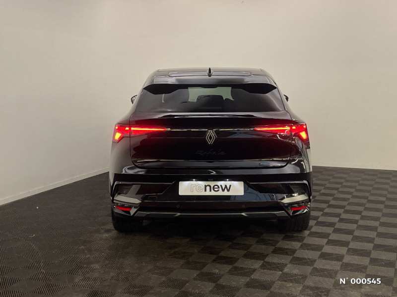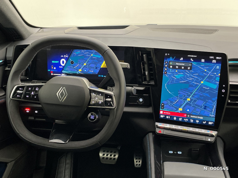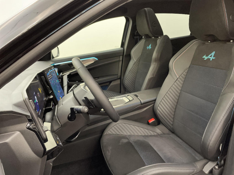 Hayon motorisé / Carte Renault accès et démarrage mains libres / Alerte de distance de sécurité / Kit de gonflage / Sièges avec système ISOFIX / Avertisseur d'angle mort et prévention sortie de voie en cas de dépassement / Notice d'utilisation digitale embarqué dans le système multimédia du véhicule / 4Control advanced / Appuie-têtes AV grand confort / Console centrale avec repose main coulissant / Miroir de surveillance enfants / Lumière d'ambiance personnalisable / Rétroviseur intérieur électrochrome sans cadre / Ciel de toit gris anthracite / Clignotants AR dynamiques / Pack Design esprit Alpine extérieur / Pack Design esprit Alpine intérieur / Navigation Google Maps / Tableau de bord full numérique 12,3'' / Alerte franchissement de ligne et assistant maintien dans la voie / Avertisseur de sortie de stationnement en marche AR avec freinage d'urgence automatique / Pré-équipement alarme / Aide au parking AV/AR et latéral / Commutation automatique des feux de route/croisement / Alerte sortie sécurisée des occupants / Airbags latéraux, rideaux et central AV / Sellerie mixte Alcantara avec surpiqures bleues et logo Alpine lumineux / Plaque de protection de coffre en aluminium / Feux AV adaptive LED vision / Jantes alliage 20'' castellet noires diamantées / 2 prises USB à l'AV et à l'AR / Système Multimédia openR link 12" : navigation & services Google intégrés, audio Arkamys Auditorium / Contrôle de la traction (TCS) / Boîte de vitesse automatique 4 rapports / Pack contrôle à distance (via l'application My Renault), inclus pendant 5 ans / Mise à jour système (via firmware over the air FOTA), inclus pendant 5 ans / Maintenance connectée, incluse pendant 8 ans / Pack connected driving, inclus pendant 5 ans / Console de toit avec porte-lunettes / Multi-sense
