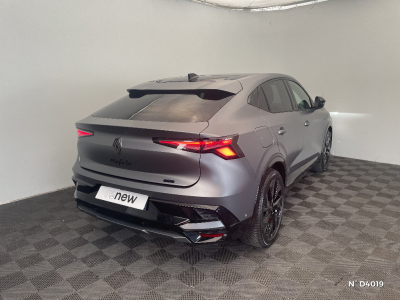 Console centrale avec repose main coulissant / Console de toit avec porte-lunettes / Contrôle de la traction (TCS) / Feux AV adaptive LED vision / Hayon motorisé / Jantes alliage 20'' castellet noires diamantées / Kit de gonflage / Lumière d'ambiance personnalisable / Maintenance connectée, incluse pendant 8 ans / Miroir de surveillance enfants / Mise à jour système (via firmware over the air FOTA), inclus pendant 5 ans / Multi-sense / Navigation Google Maps / Notice d'utilisation digitale embarqué dans le système multimédia du véhicule / Pack connected driving, inclus pendant 5 ans / Pack contrôle à distance (via l'application My Renault), inclus pendant 5 ans / Pack Design esprit Alpine extérieur / Pack Design esprit Alpine intérieur / Plaque de protection de coffre en aluminium / Pré-équipement alarme / Rétroviseur intérieur électrochrome sans cadre / Sellerie mixte Alcantara avec surpiqûres bleues et logo Alpine lumineux / Sièges avec système ISOFIX / Système Multimédia openR link 12" : navigation & services Google intégrés, audio Arkamys Auditorium / Tableau de bord full numérique 12,3'' / 4Control advanced / Aide au parking AV/AR et latéral / Airbags latéraux, rideaux et central AV / Alerte de distance de sécurité / Alerte franchissement de ligne et assistant maintien dans la voie / Alerte sortie sécurisée des occupants / Avertisseur d'angle mort et prévention sortie de voie en cas de dépassement / Avertisseur de sortie de stationnement en marche AR avec freinage d'urgence automatique / Boîte de vitesse automatique 4 rapports / Carte Renault accès et démarrage mains libres / Ciel de toit gris anthracite / Clignotants AR dynamiques / Commutation automatique des feux de route/croisement