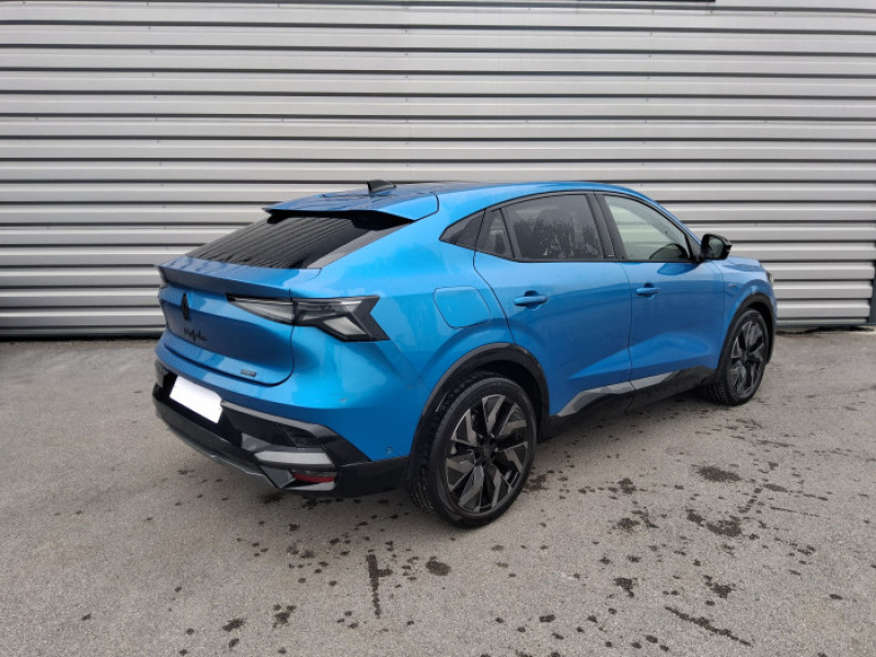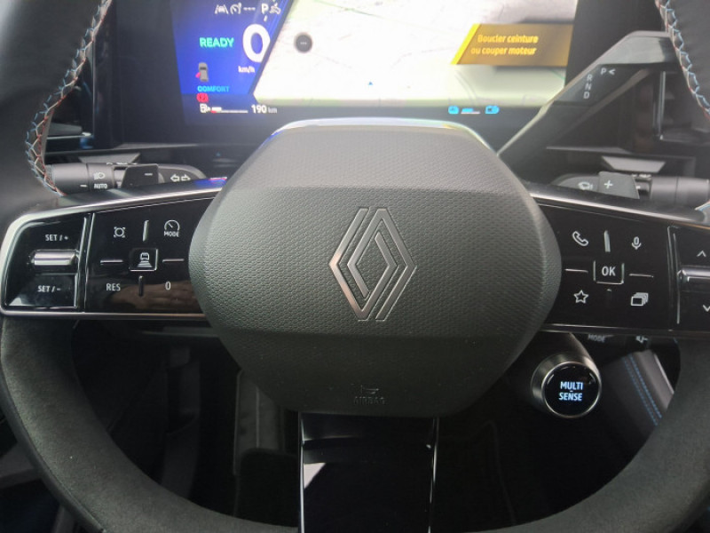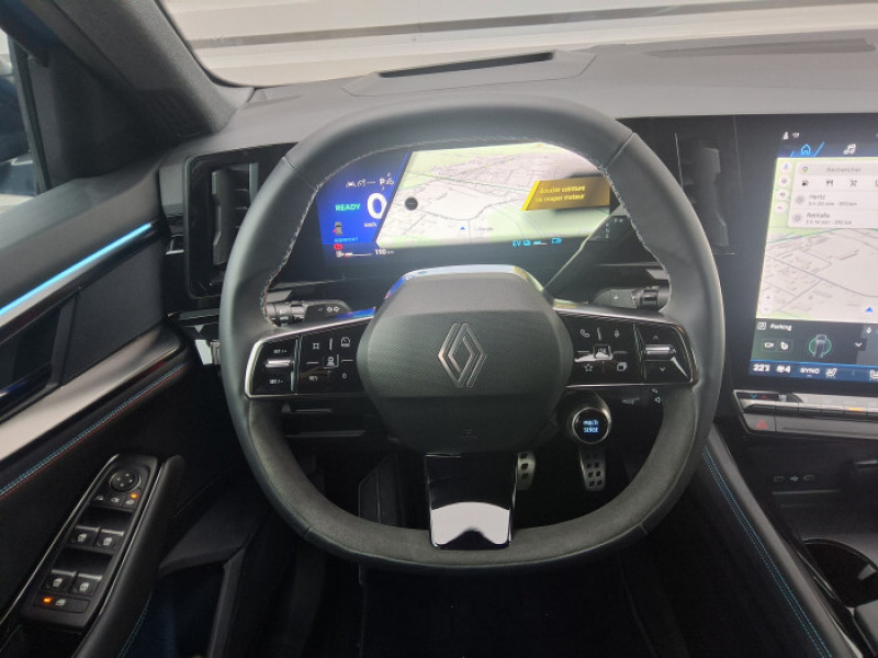 4Control advanced / Aide au parking AV/AR et lateral / Airbags lateraux, rideaux et central AV / Alerte de distance de securite / Alerte franchissement de ligne et assistant maintien dans la voie / Alerte sortie securisee des occupants / Avertisseur d'angle mort et prevention sortie de voie en cas de depassement / Avertisseur de sortie de stationnement en marche AR avec freinage d'urgence automatique / Boite de vitesse hybride multimode 6 rapports / Carte Renault acces et demarrage mains libres / Ciel de toit gris anthracite / Clignotants AR dynamiques / Commutation automatique des feux de route/croisement / Console centrale avec repose main coulissant / Console de toit avec porte-lunettes / Controle de la traction (TCS) / Feux AV adaptive LED vision / Hayon motorise / Jantes alliage 20'' castellet noires diamantees / Kit de gonflage / Lumiere d'ambiance personnalisable / Maintenance connectee, incluse pendant 8 ans / Miroir de surveillance enfants / Mise a jour systeme (via firmware over the air FOTA), inclus pendant 5 ans / Multi-sense / Navigation Google Maps / Notice d'utilisation digitale embarque dans le systeme multimedia du vehicule / Pack connected driving, inclus pendant 5 ans / Pack controle a distance (via lapplication My Renault), inclus pendant 5 ans / Pack Design esprit Alpine exterieur / Pack Design esprit Alpine interieur / Plaque de protection de coffre en aluminium / Retroviseur interieur electrochrome sans cadre / Sellerie mixte Alcantara avec surpiqures bleues et logo Alpine lumineux / Sieges avec systeme ISOFIX / Systeme Multimedia openR link 12" : navigation & services Google integres, audio Arkamys Auditorium / Tableau de bord full numerique 12,3''